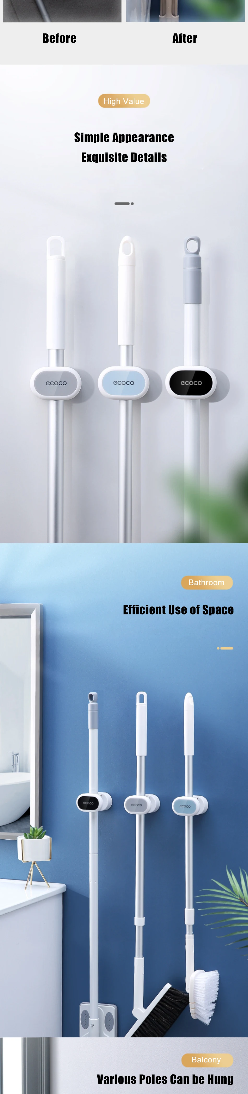 1. Настенная стойка для швабры, полностью использует пространство на стене, подходит для всех видов полюсов