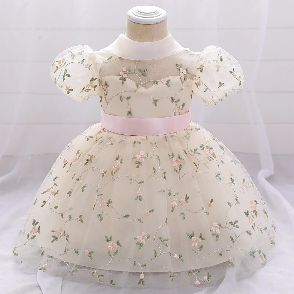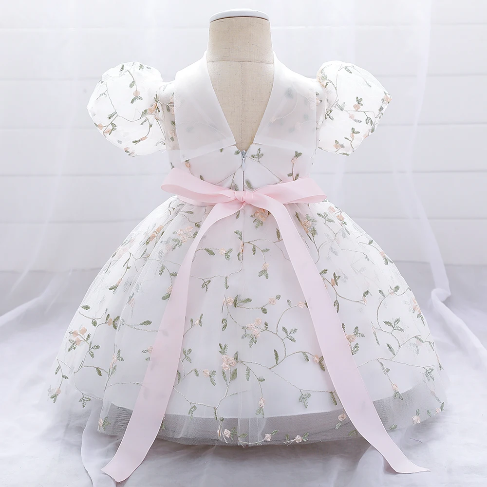 Детское платье с бантом, для первого дня рождения, белое платье принцессы с цветочной вышивкой для первого причастия