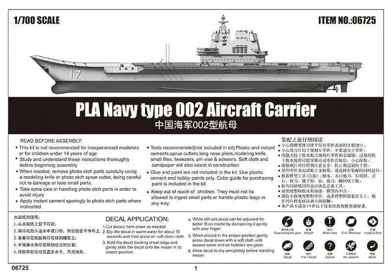 Модель авиаперевозчика Trumpeter 06725 1700 PLA Navy Type 002, модель военной сборки