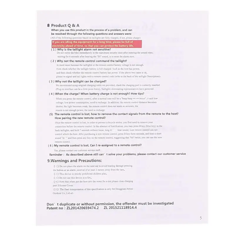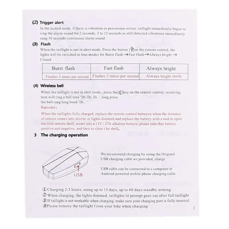 · Велосипедный задний фонарь и Противоугонная сигнализация в одном устройстве, удобный и компактный в использовании;