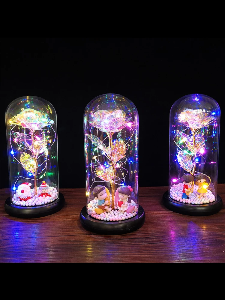 Светодиод Galaxy Rose In стеклянный купол мигающие цветы Рождество День матери гилр Свадебные украшения подарки Прямая поставка