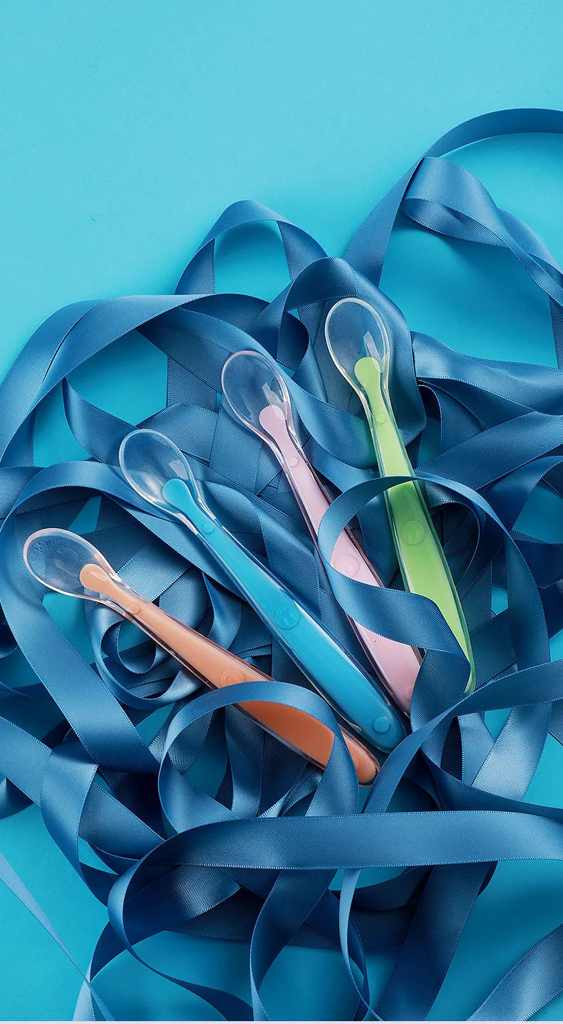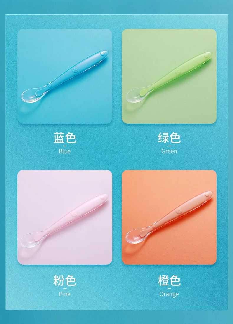 Детская Мягкая силиконовая ложка конфетного цвета с датчиком темпер...
