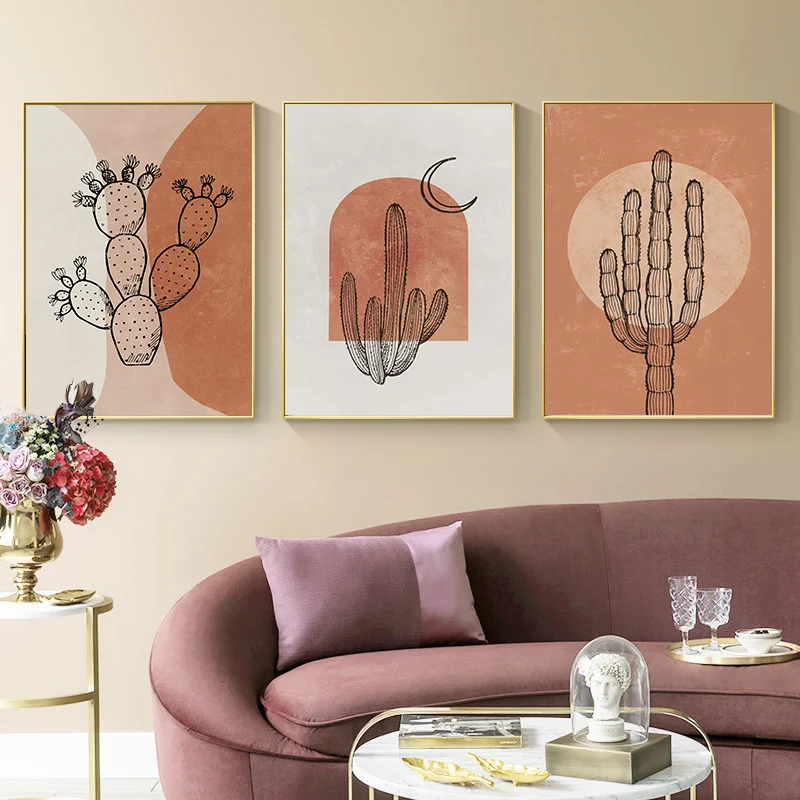 Простой скандинавский абстрактный геометрический оранжевый морди Солнце Луна кактус Фреска для крыльца печатный плакат