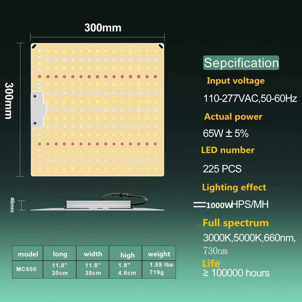 Высокая эффективность: Samsung LM281B Quantum LED Grow Light Board: светодиодный чип высокой яркости, независимая конструкция блока питания IC drive с использованием интеллектуального привода для обеспечения стабильного тока для чипа. 225 светодиодов обеспечивают высокую производительность PAR, высокую энергоэффективность с 2,7 мкмол/Дж. Потребляет 60 Вт, работает на 50% меньше энергии, чем HPS или другие светодиодные лампы для растений.