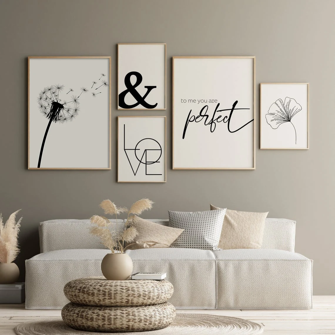 Простые и современные скандинавские черно-белые английские буквы Одуванчик крыльцо гостиная роспись плакат печать декоративная картина