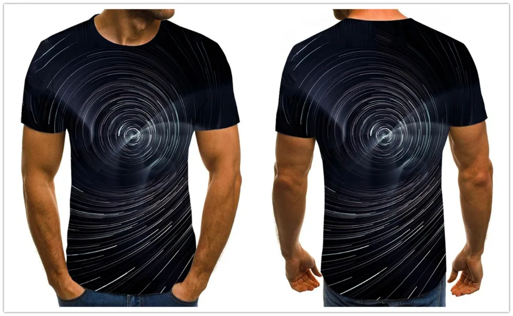 Забавная 3D Мужская футболка, черная трехмерная графическая футболк...