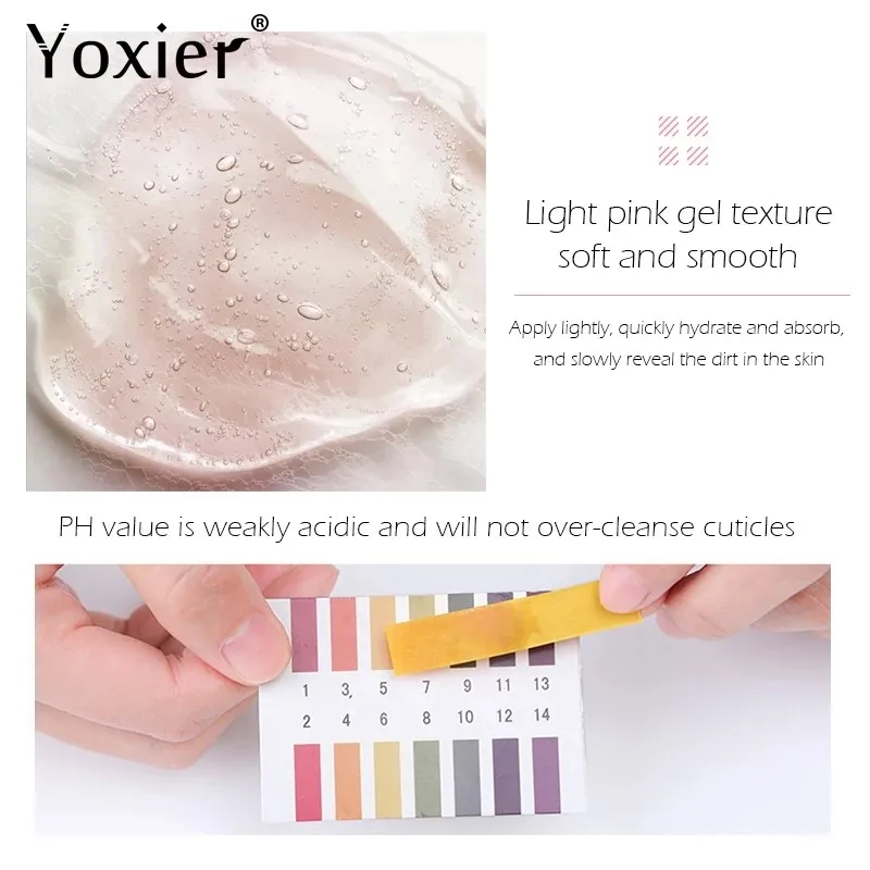 Полезное использование, эффект удивит васСветильник с мягкой и гладкой текстурой розового геляНанесите слегка, быстро увлажните и поглотите, и медленно обнаружите грязь в кожеГрязь в кожеСлабая кислотаЗначение PH является слабо кислотным и не будет чрезмерно очищать кутикулыУдержание влагиПосле использования кожа естественным образом освежает и увлажняет, не туго и не скользит