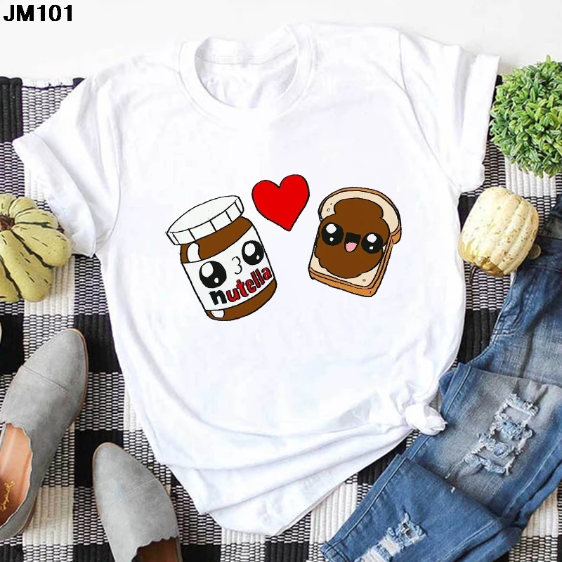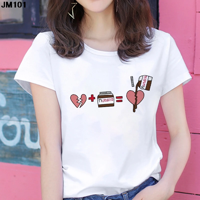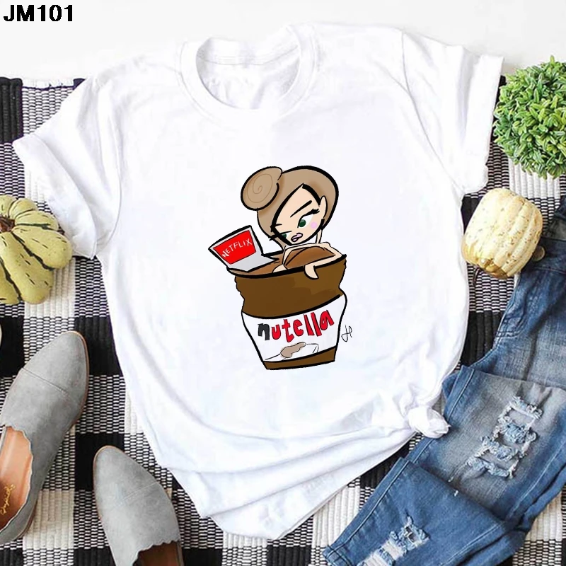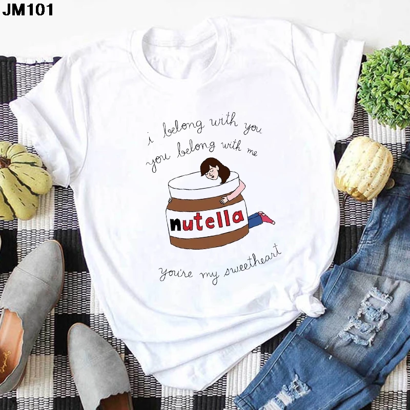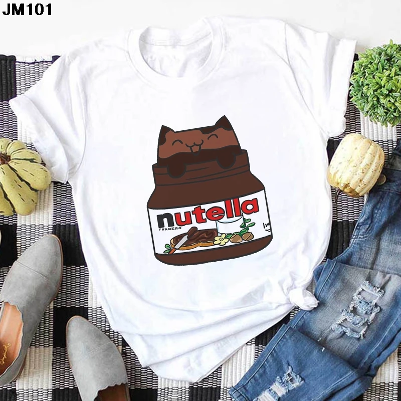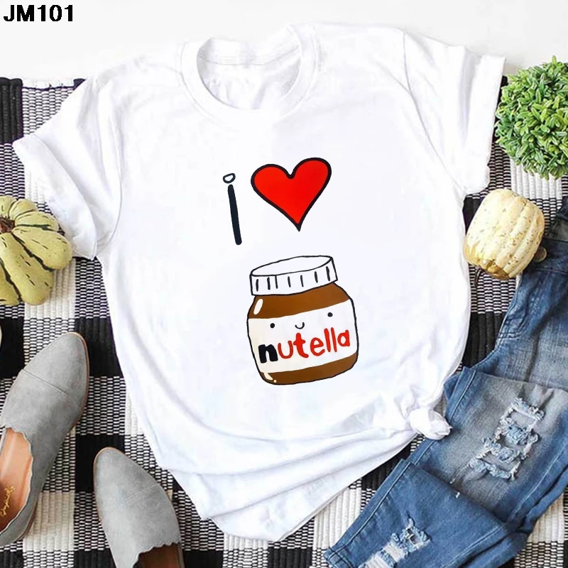 Новая летняя женская футболка с милым принтом Nutella, женская футболка в стиле Харадзюку, женские топы с круглым вырезом, футболка, модная забавная белая футболка