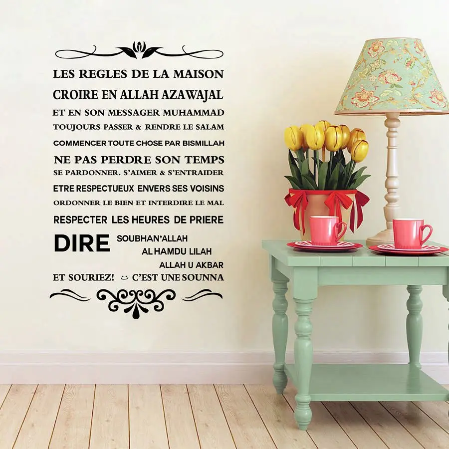 Наклейка на стену Коран на французскую версию, мусульманская Наклейка на стену, мусульманский Мухаммед, дом, гостиная, правила семьи, украшение на дверь, Виниловая наклейка в подарок 66
