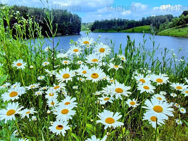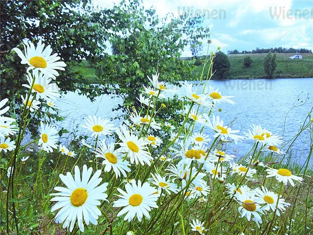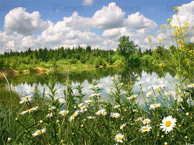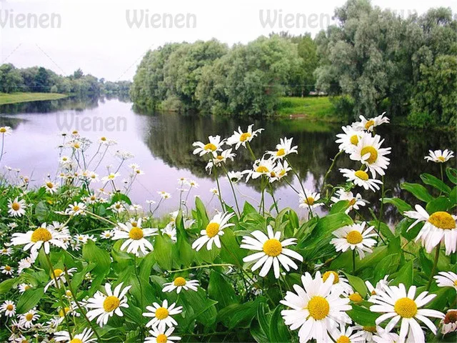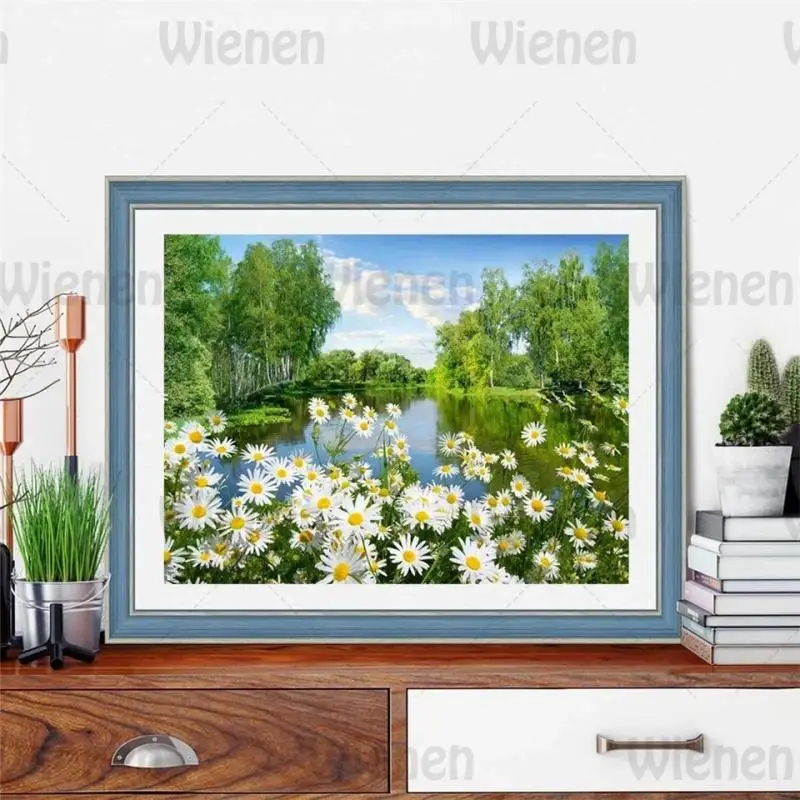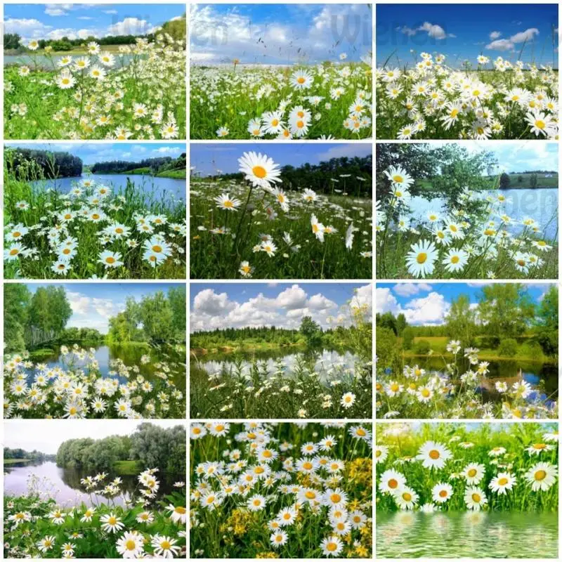 Картина для вышивки крестиком, Набор для вышивки крестиком из зеленых натуральных фотографий, 5D сделай сам, с белыми маргаритками, цветами, лугом, картиной