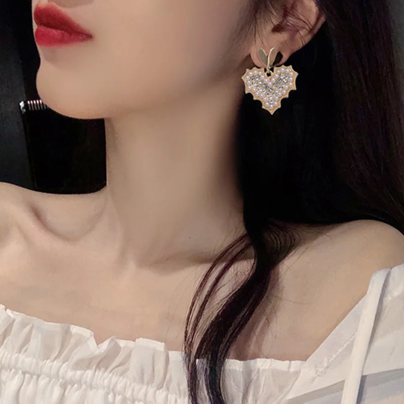 Женские серьги-гвоздики с жемчугом, корейские серьги с кристаллами и любовным сердцем, подарочные украшения для вечерние, 2021