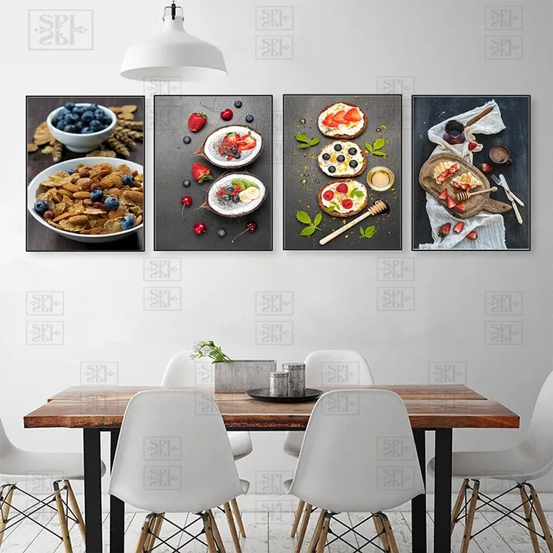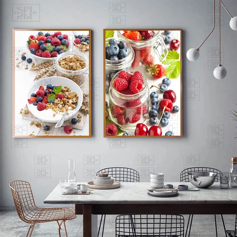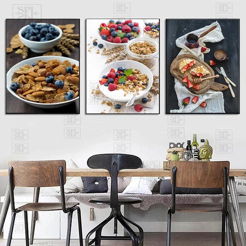 Постер для завтрака, еда, холст, живопись, Современное кухонное украшение, йогурт, мусли, ягоды, настенные художественные картины для гостиной, домашний декор