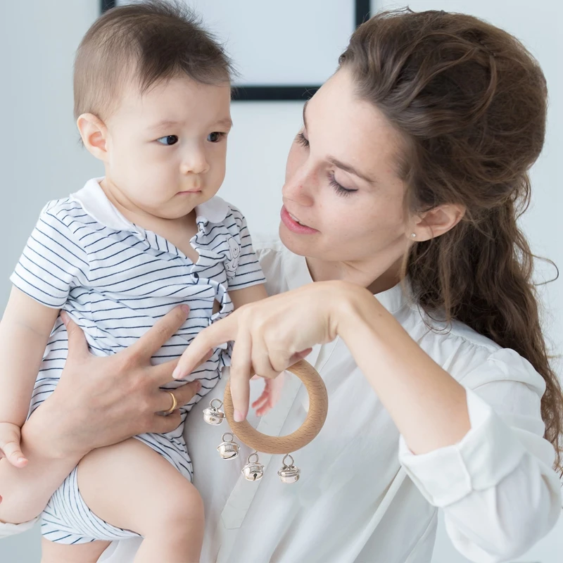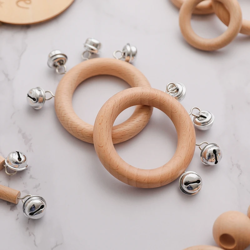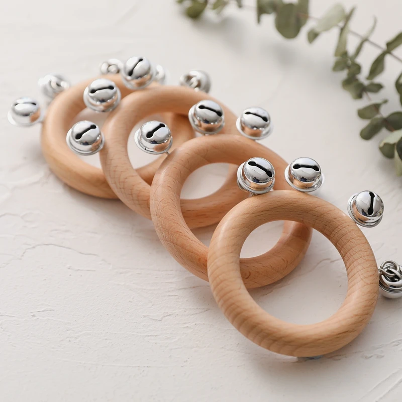 Деревянная Музыкальная погремушка для детей 0-12 месяцев, ручной Колокольчик, ударный инструмент из бука, сенсорные зубные кольца, безопасная игрушка Монтессори