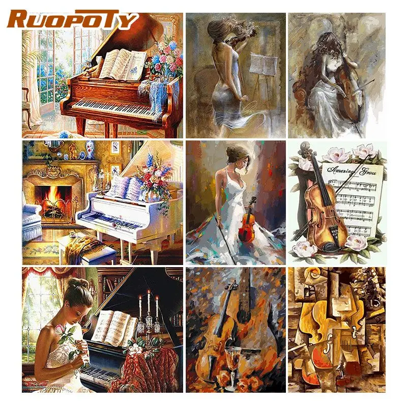 RUOPOTY рамка живопись по номерам фортепиано ручная роспись живопись на холсте подарок DIY картины по номерам наборы Декорации для дома De