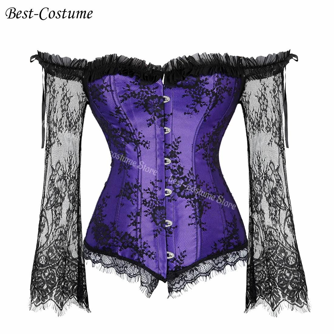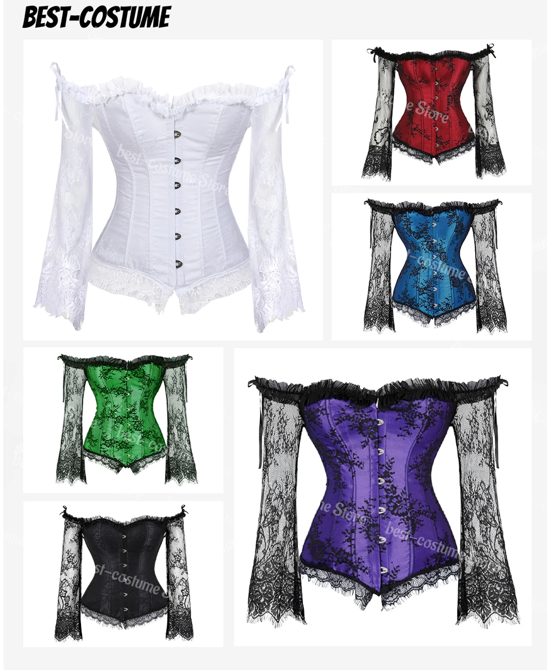 Корсет, топ, бюстье, женское нижнее белье, корсет с длинным рукавом и открытым плечом, эротические красные костюмы бурлеска с цветочным кружевом