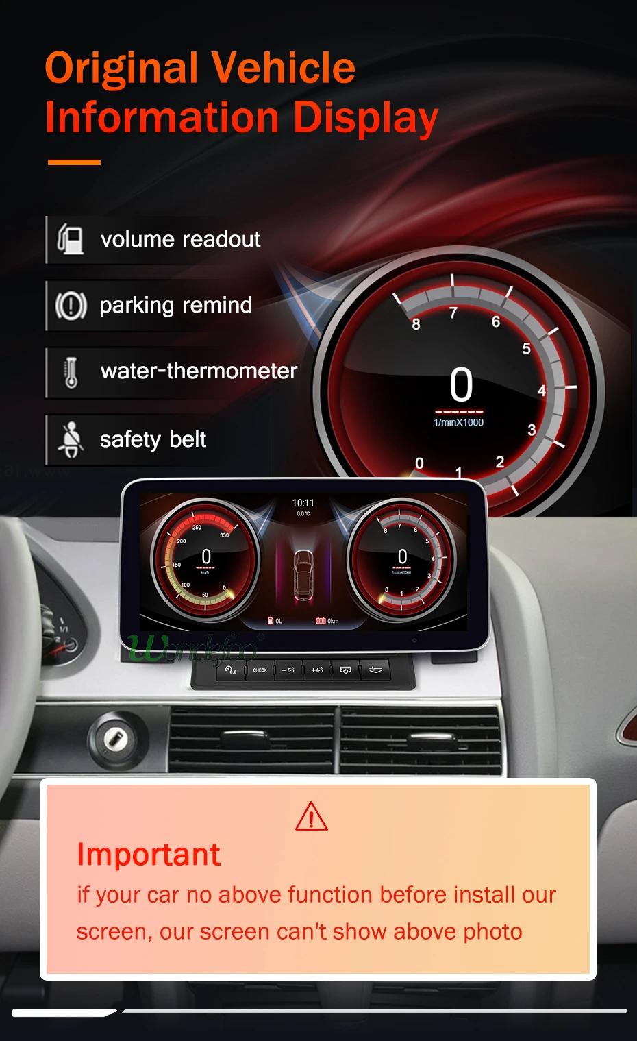 Пожалуйста, проверьте вашу оригинальную автомобильную панель и внешний вид, прежде чем сделать заказ, ставьте ставку, чтобы избежать ошибки. Если вы не знаете, что это устройство подходит для вашего автомобиля или нет, отправьте нам сообщение, мы поможем вам.Оригинальный Автомобильный Одноцветный экран не подходит для нашего автомобильного радиоОригинальный Автомобильный цветной экран может подходить к нашему автомобильному радио.