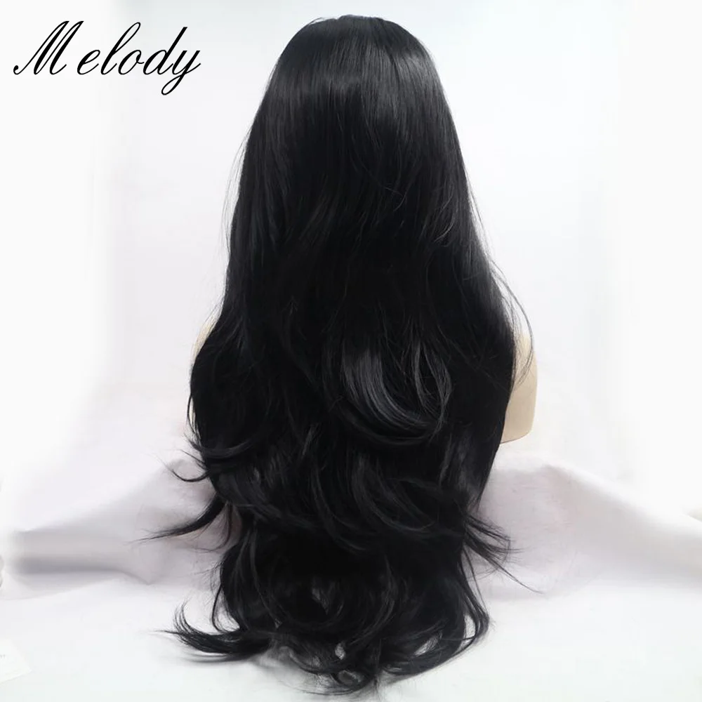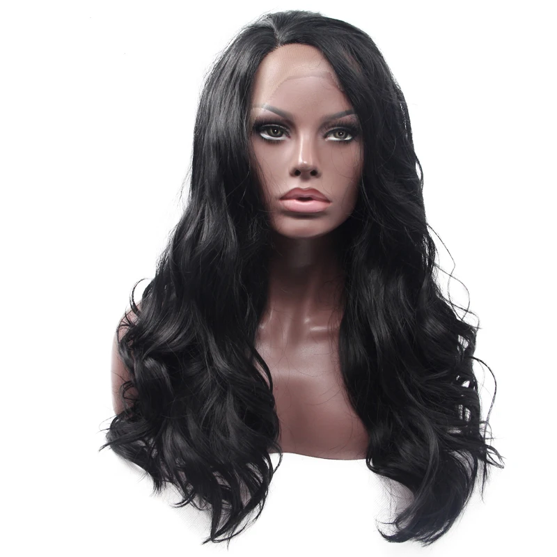 Длинный черный прямой синтетический кружевной передний парик кудрявые безклеевые Тело водная волна предварительно выщипанные волосы для женщин Косплей фронтальные парики