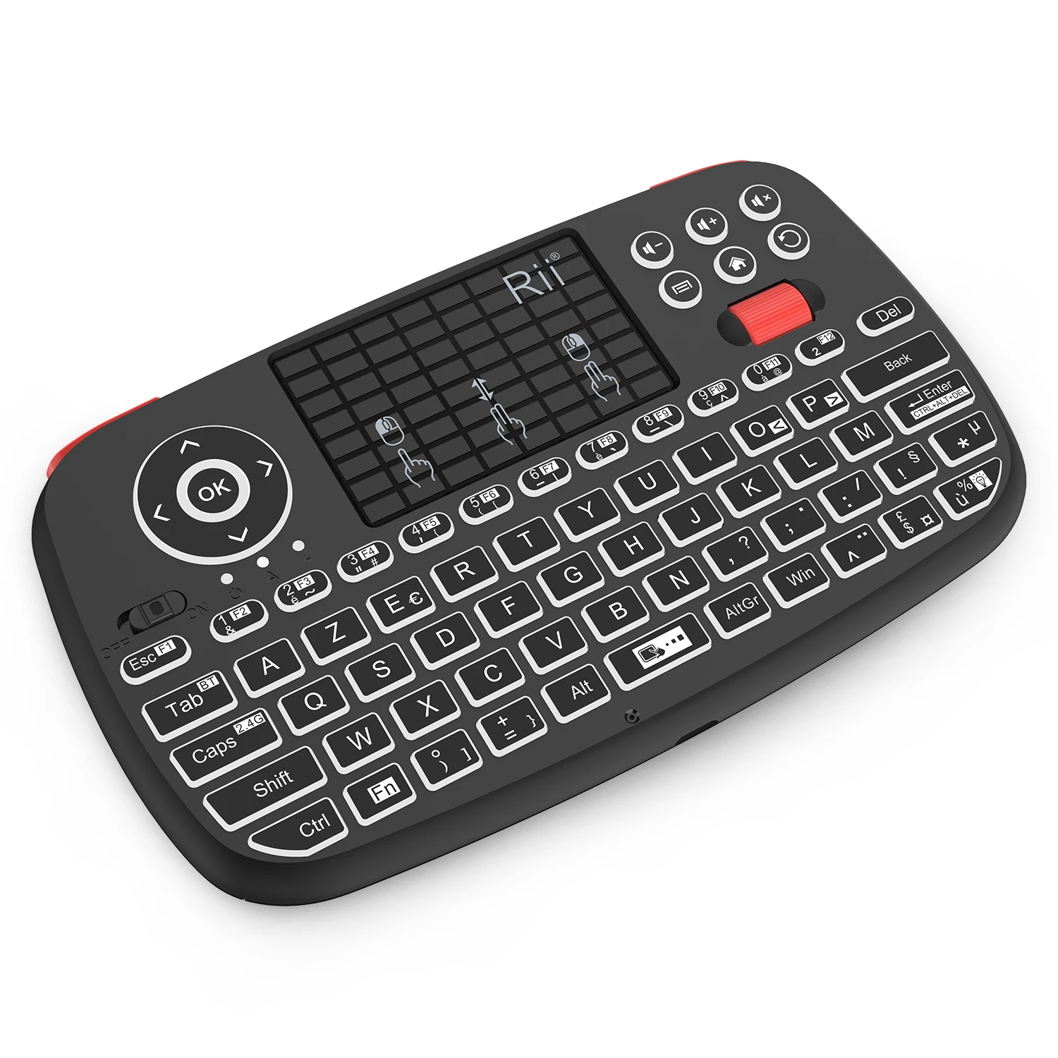 Мини-Клавиатура Rii i4, с французской раскладкой, 2,4 ГГц, Bluetooth, с двумя режимами, с сенсорной панелью мышь с подсветкой, для ТВ-приставки Android, ПК