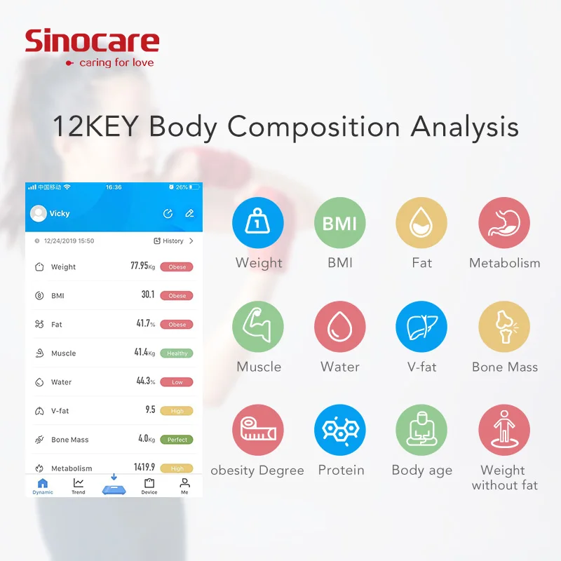 Весы Sinocare, Bluetooth, напольные, для измерения жировой массы тела, воды, мышечной массы, ИМТ, светодиодный дисплей, для ванной