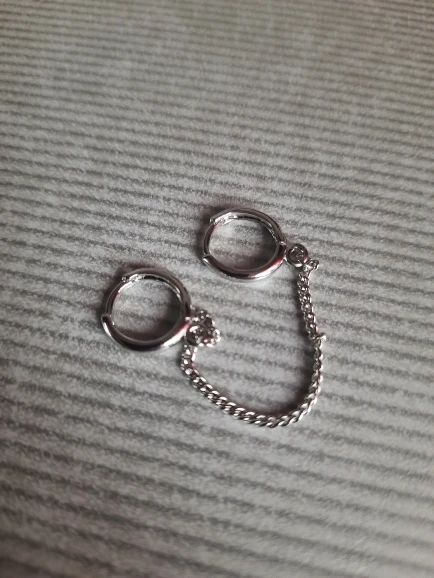 Серьги не серебро, но выглядят прилично. Цепочка коротковата, на два соседних прокола. Смотрятся отлично