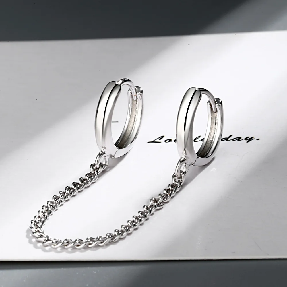 Серьги-кольца с двойными отверстиями для пирсинга женские, модные гладкие простые кольца с цепочкой, соединяемые блестящие очаровательные ювелирные изделия