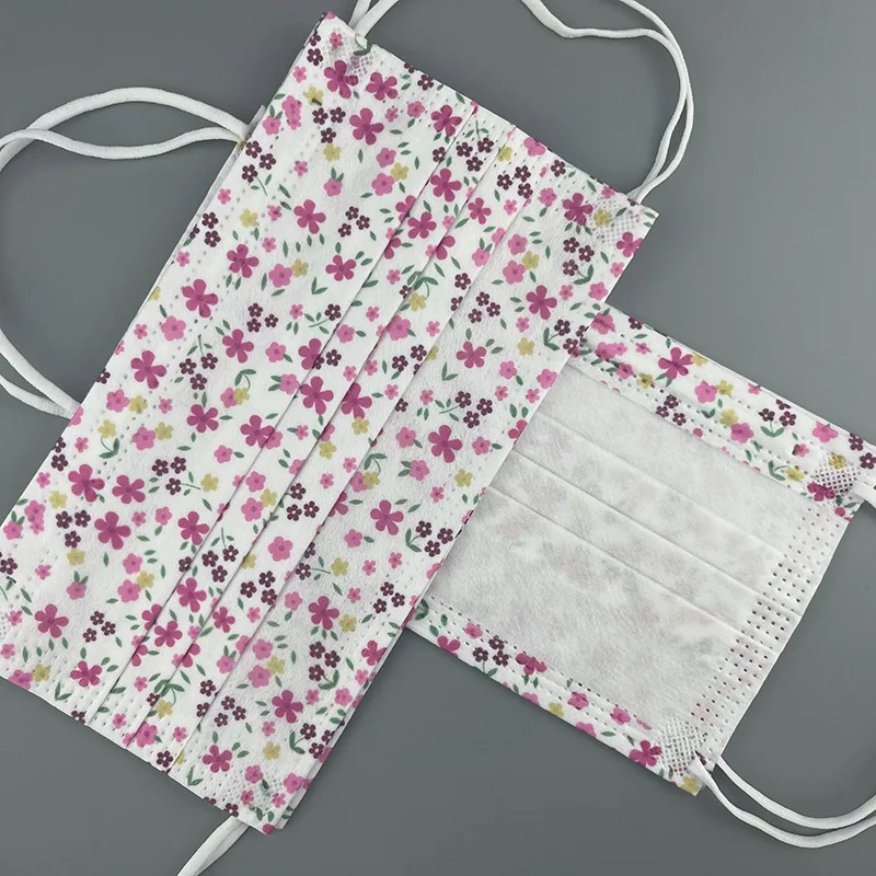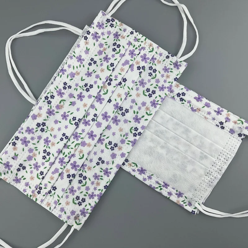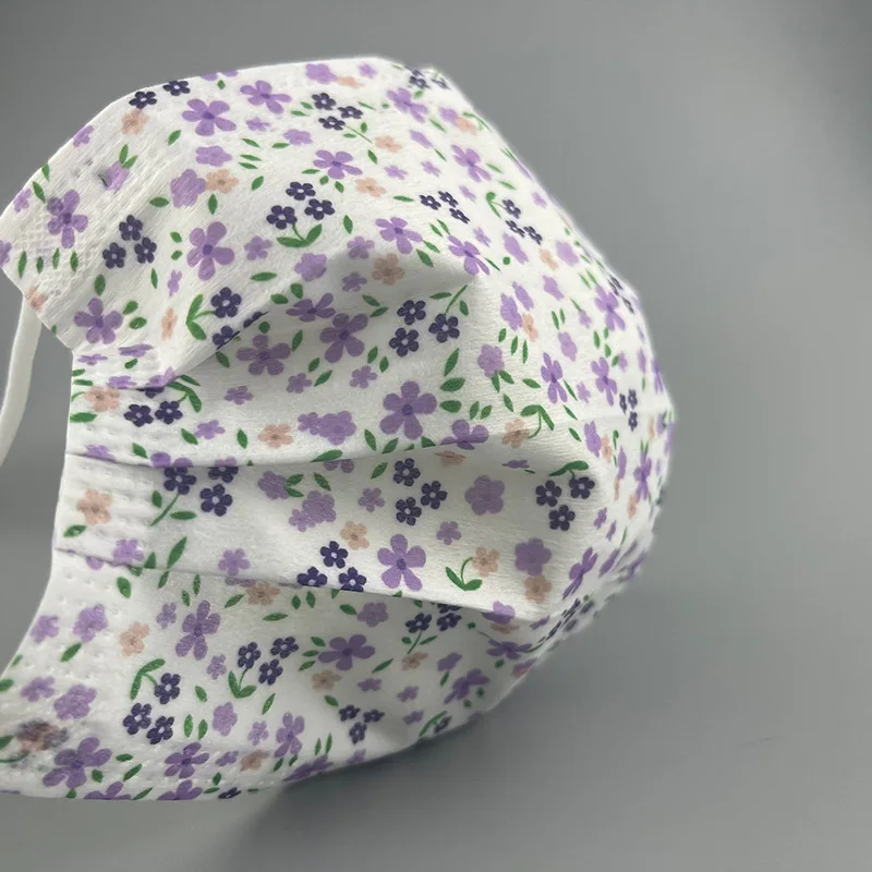 Маска одноразовая трехслойная Пылезащитная, для взрослых, с цветочным принтом, 50100 шт.