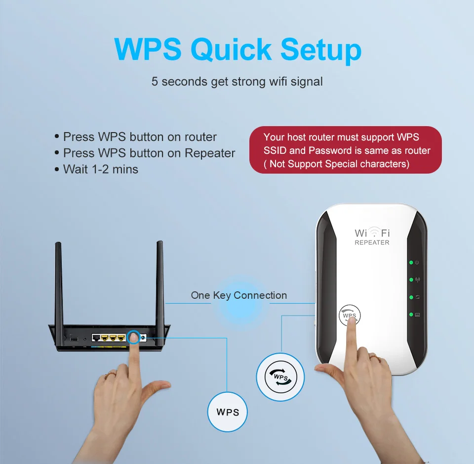 ВРасширитель диапазона WiFi может покрыть два этажа с релейным расстоянием 50Метров и без мертвых углов через бетонную стену, удлинение иУкрепляйте беспроводной сигнал.