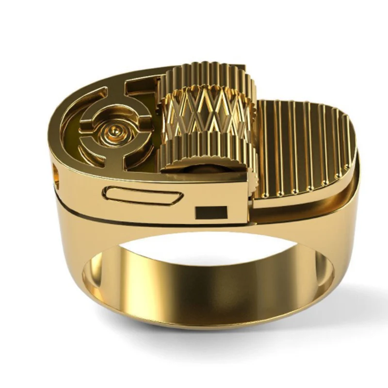 Удивительный и Уникальный Мужская мода золотое кольцо прикуривателя...