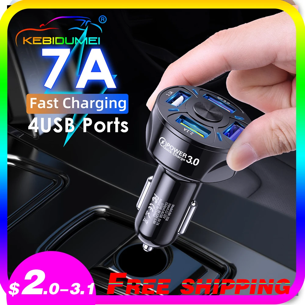 Kebidu 4 порта USB автомобильная зарядка 48 Вт Быстрая зарядка 7A мини Быстрая зарядка для iPhone 11 Xiaomi Huawei быстрое зарядное устройство адаптер в автомобиле