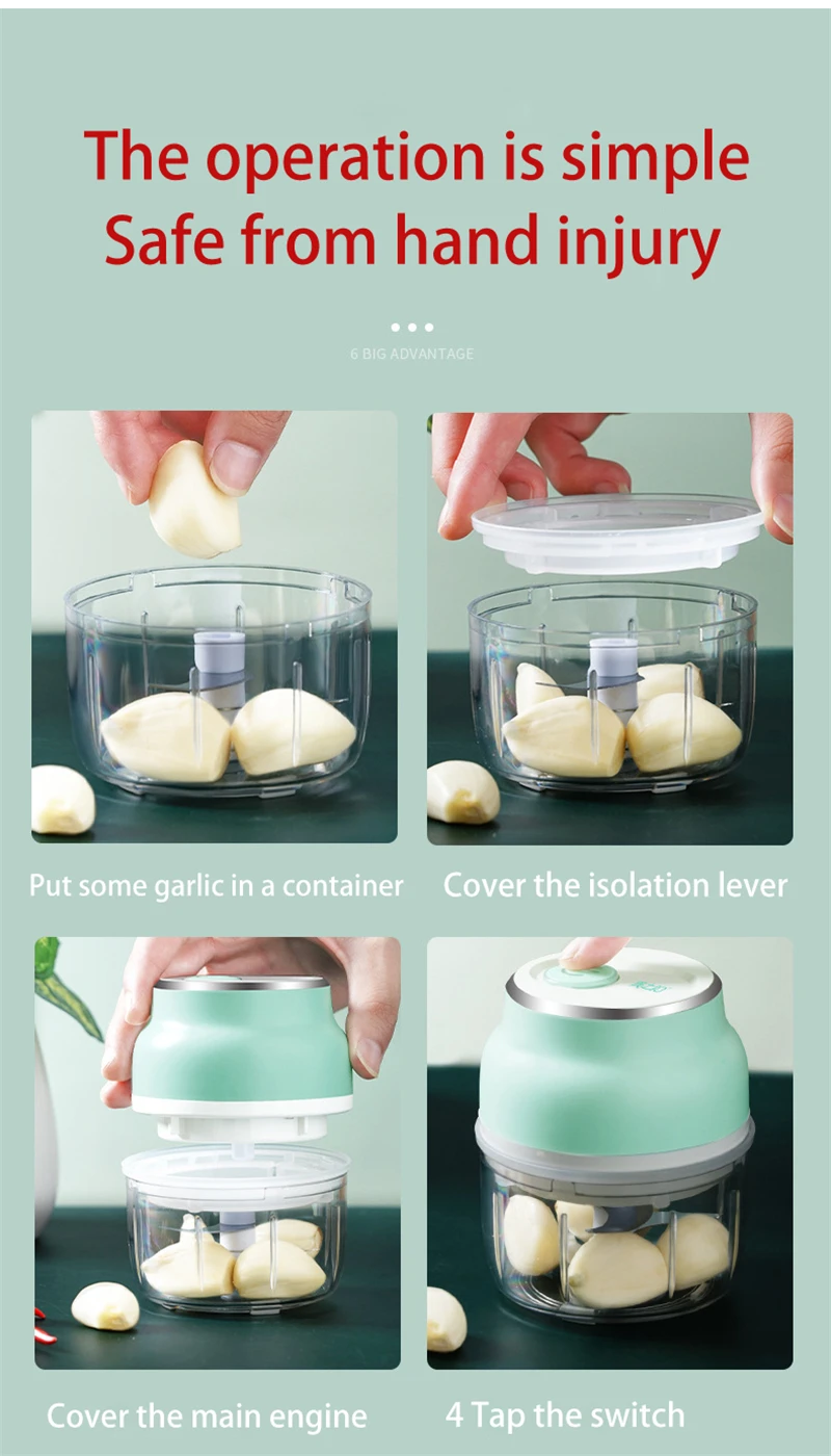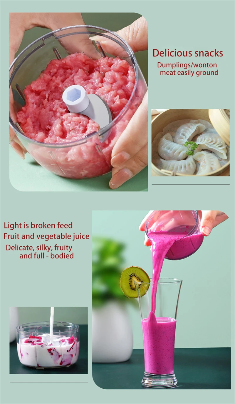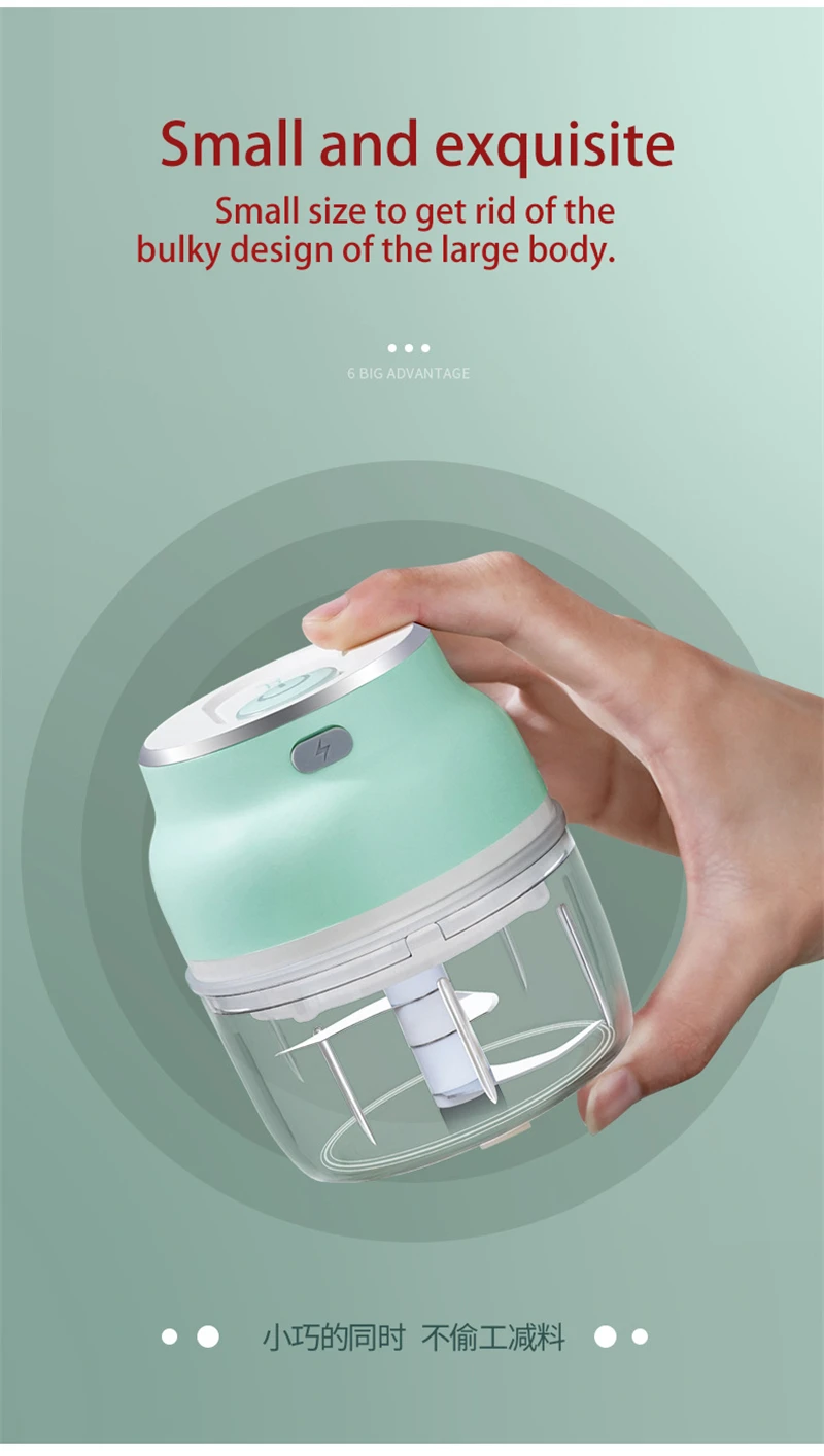1,150 мл,С 3 острыми лезвиями, можно нарезать чеснок, имбирь, перец, овощи,Фрукты, мясо и т. Д. И имеет электрическую функцию, которая может сэкономить время иРасслабьте руки. Небольшой измельчитель также легко хранить.