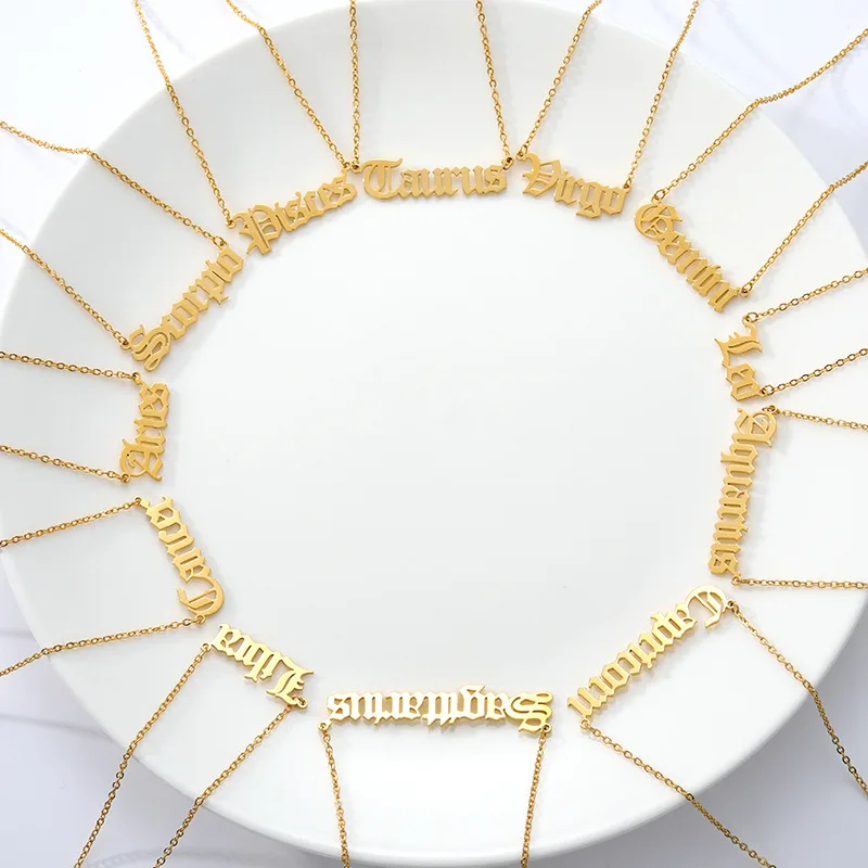 Ожерелья со старыми английскими знаками Зодиака для женщин и мужчин, цепочка из нержавеющей стали золотого и серебряного цвета, подвеска созвездия, ожерелье, ювелирные изделия