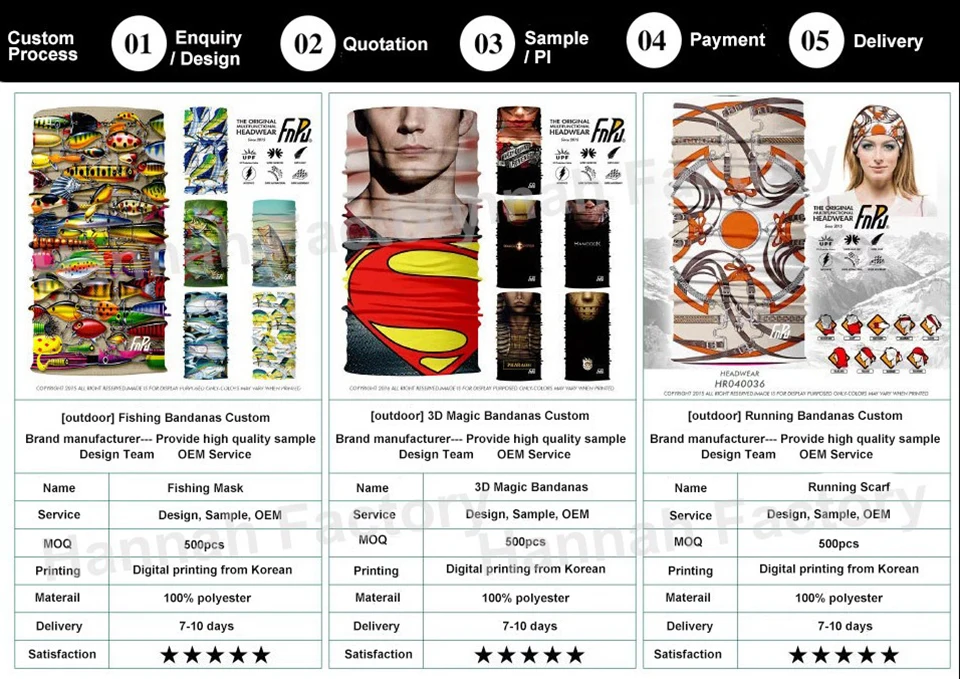 Пользовательские шеи гофрированный труба Buff Бандана Повязка Спорт...