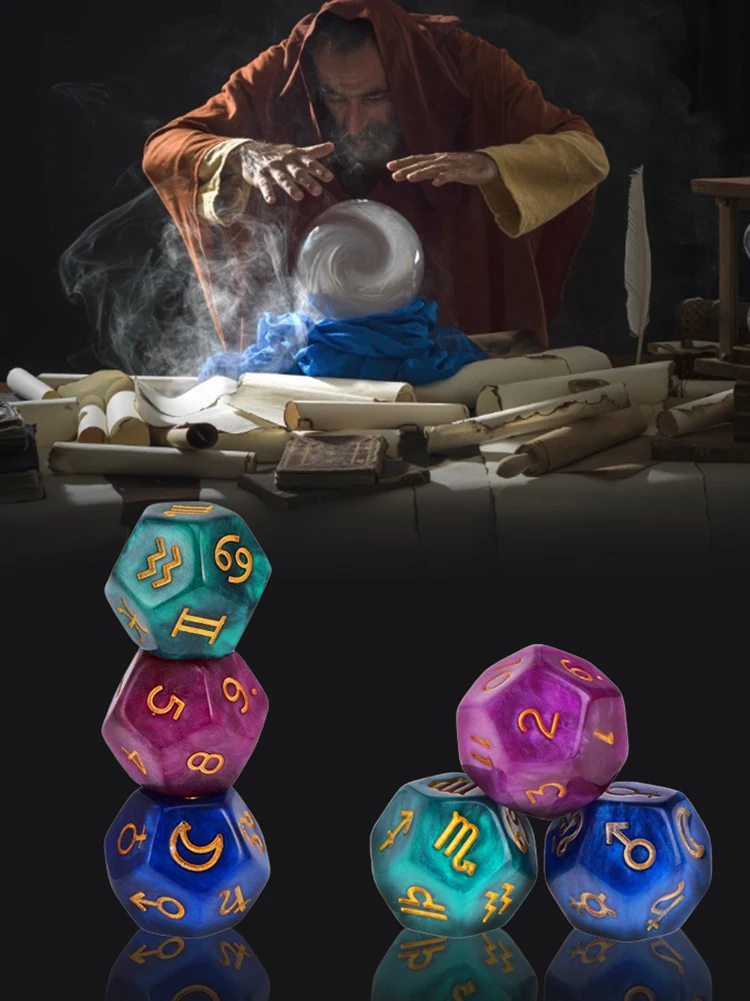 Кубики из смолы, многоцветные, 3 шт., 12-гранные, для астрологивечерние, созвездие, гадания