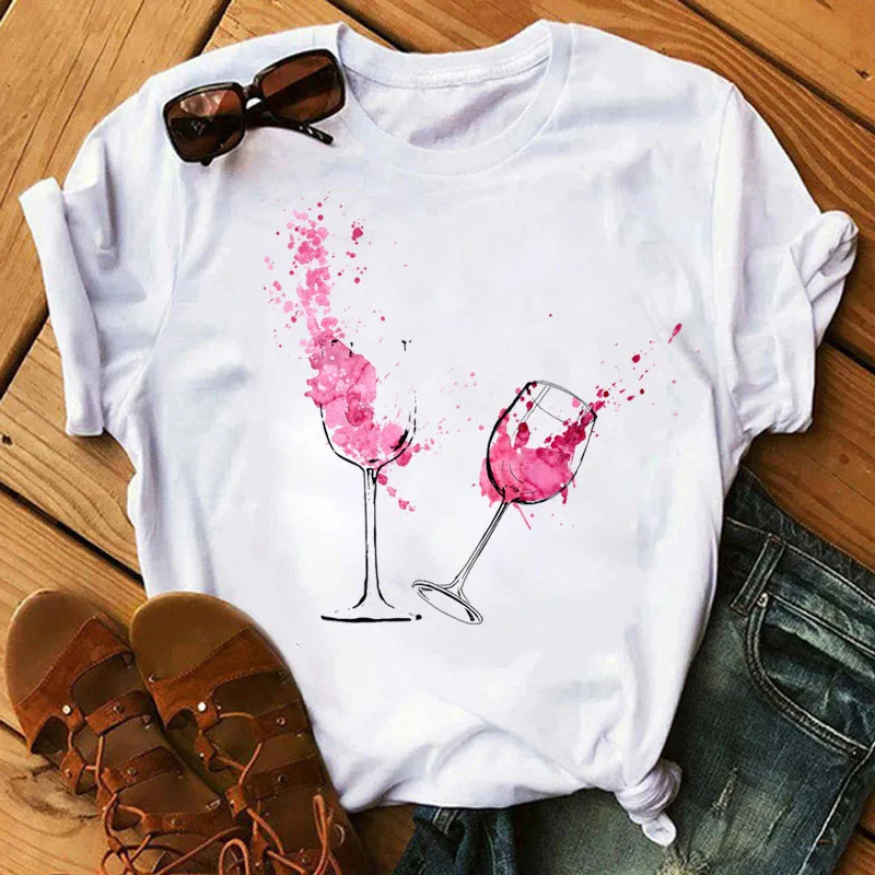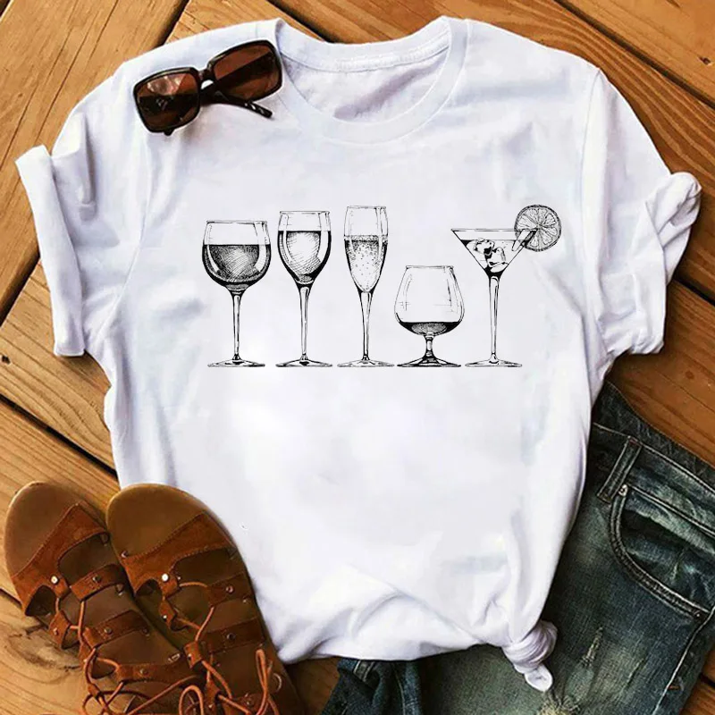 ZOGANK, модная футболка с коротким рукавом, с принтом винного бокал...