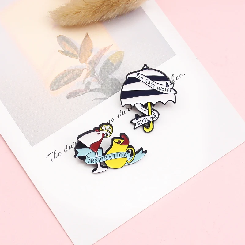 Брошь на лацкан с эмалью в виде зонтика и винного бокала