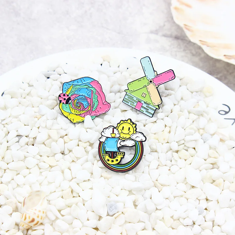 Ветряная мельница дом Радуга парусная лодка эмалированная брошь подсолнух цветок Божья коровка лацкан заколка планета мой дом Зонт винная бутылка индивидуальный значок