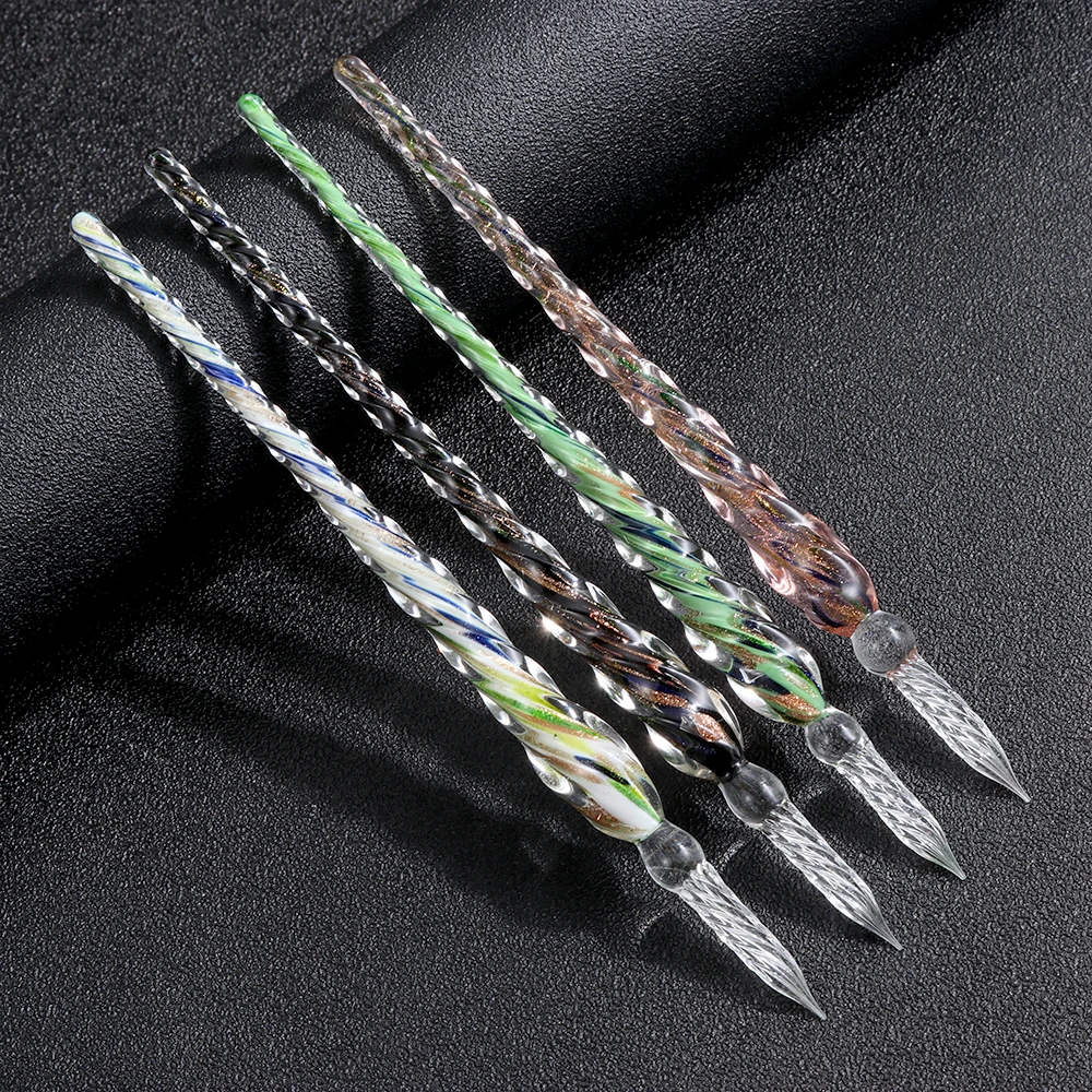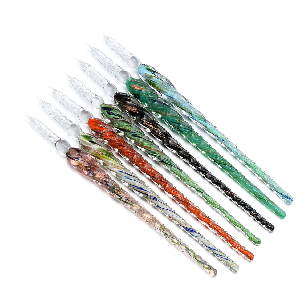 Ручка стеклянная ручка ручной работы с 3D цветком внутри, Хрустальный подставка для ручек, перьевая ручка для каллиграфии с наполнением чернилами, 1 комплект