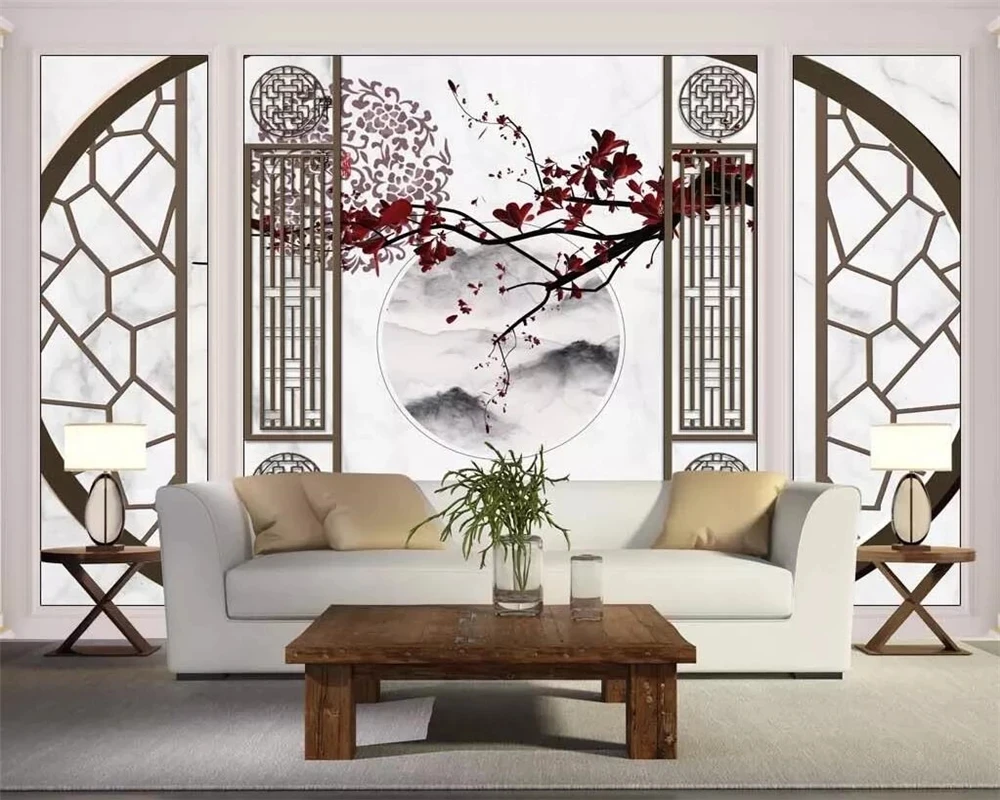 3D роспись Китайская Цветущая Слива птица благоприятный камень узор мозаика фон для телевизора гостиная спальня самоклеящиеся обои