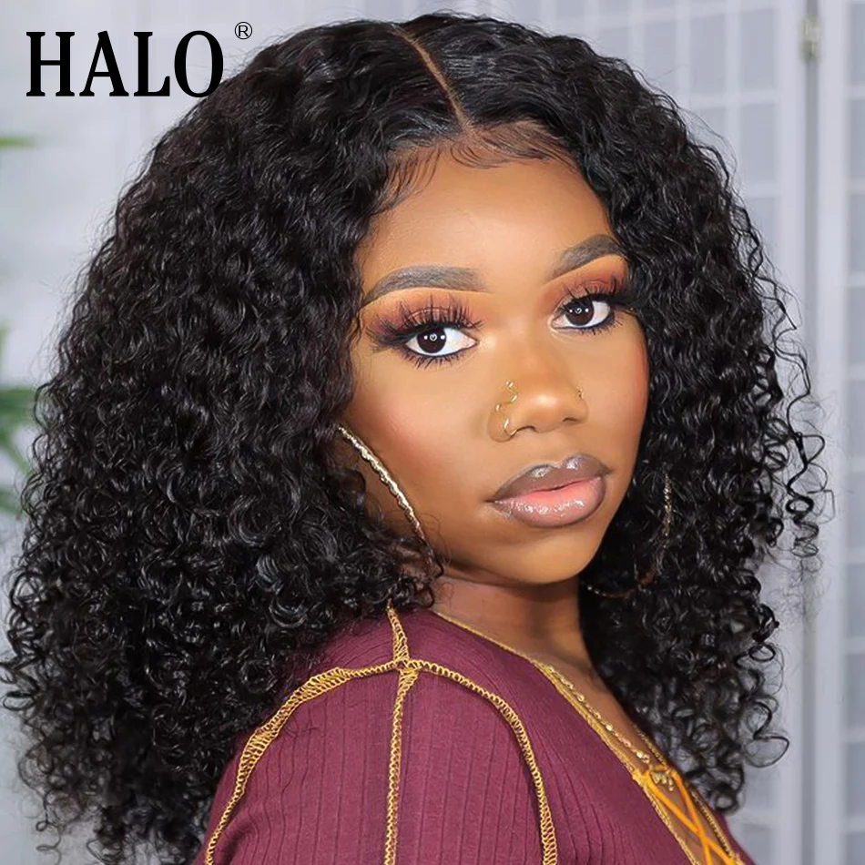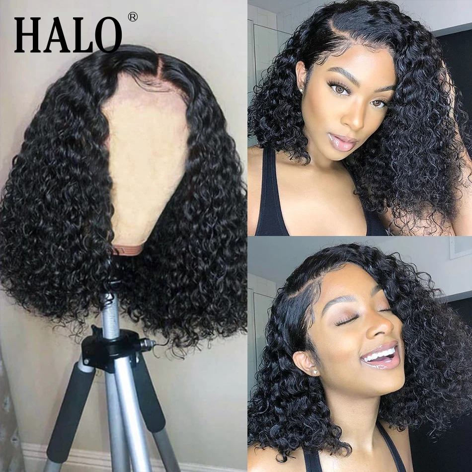 Парики с кудрявыми волосами HALO 8, 16 дюймов, 13X1 T, парики на сетке, предварительно выщипанные бразильские волосы Remy, парики с глубокой волной, короткие волосы с водной волной