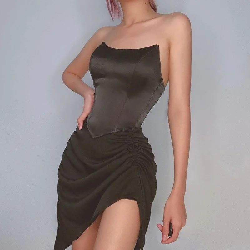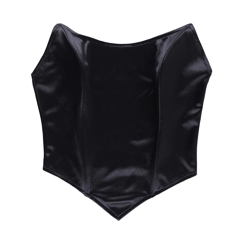 Женский атласный корсет без рукавов, с открытыми плечами и косточками