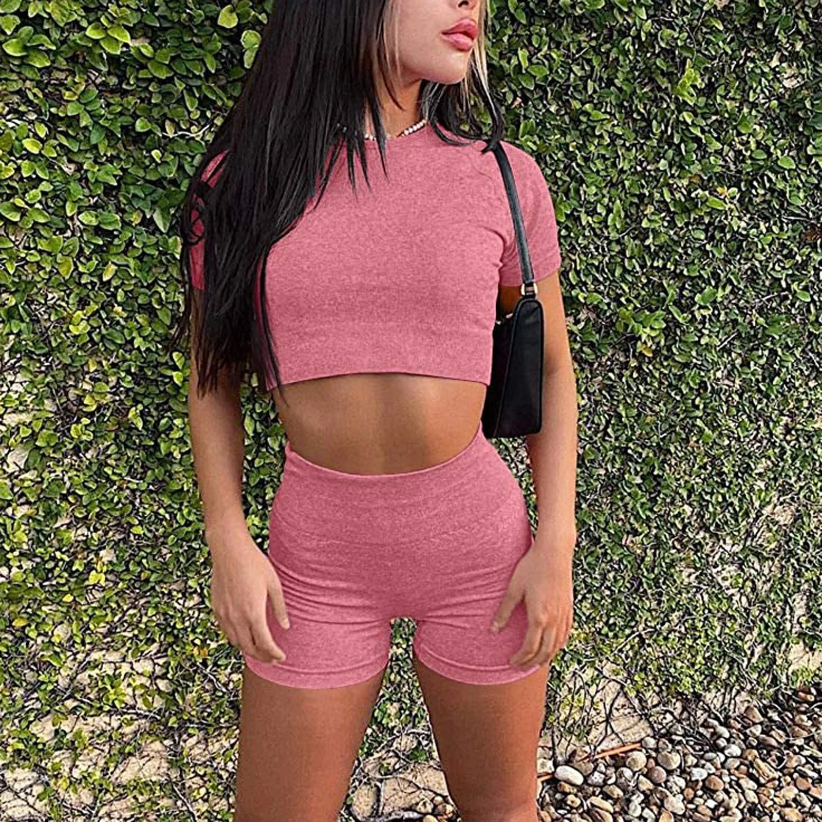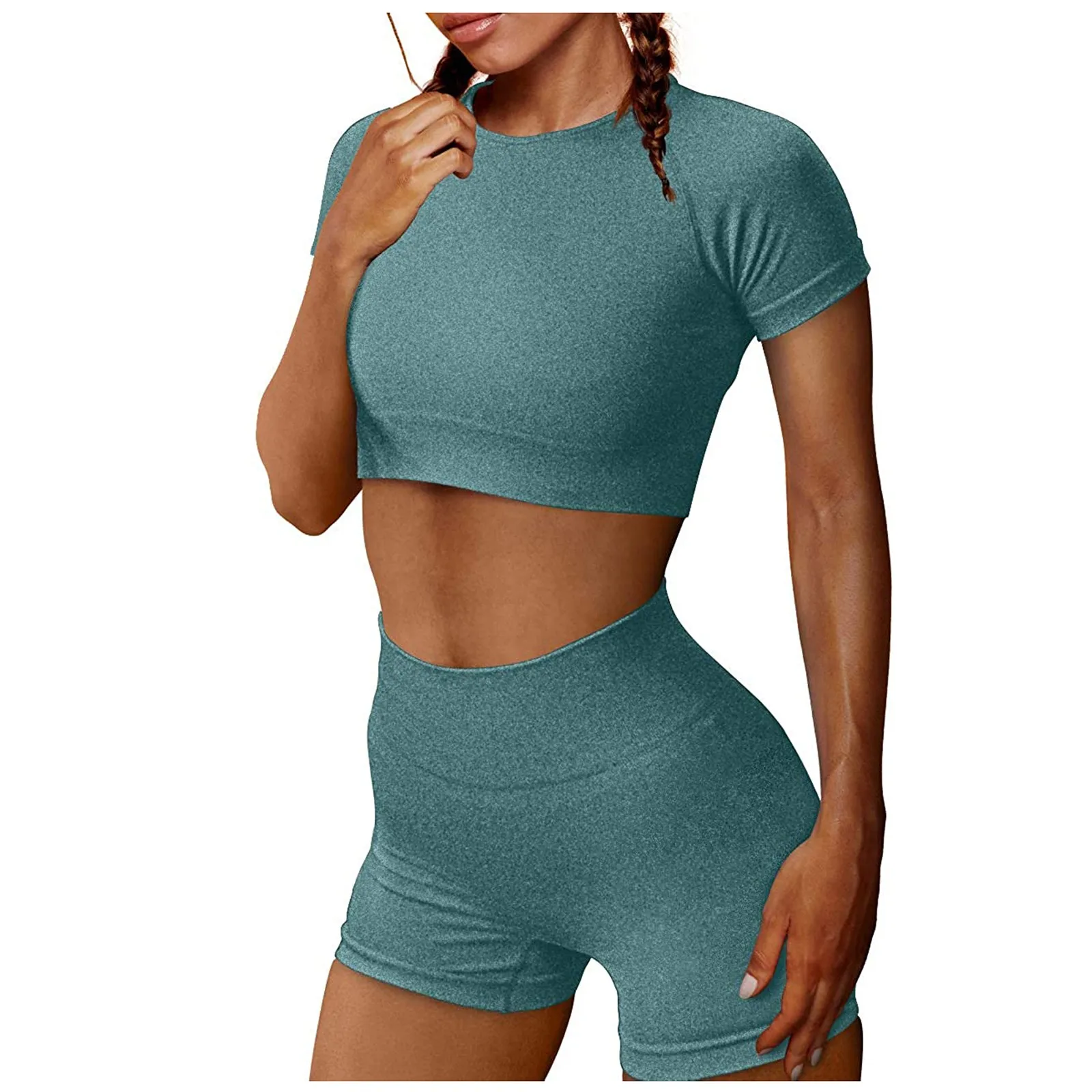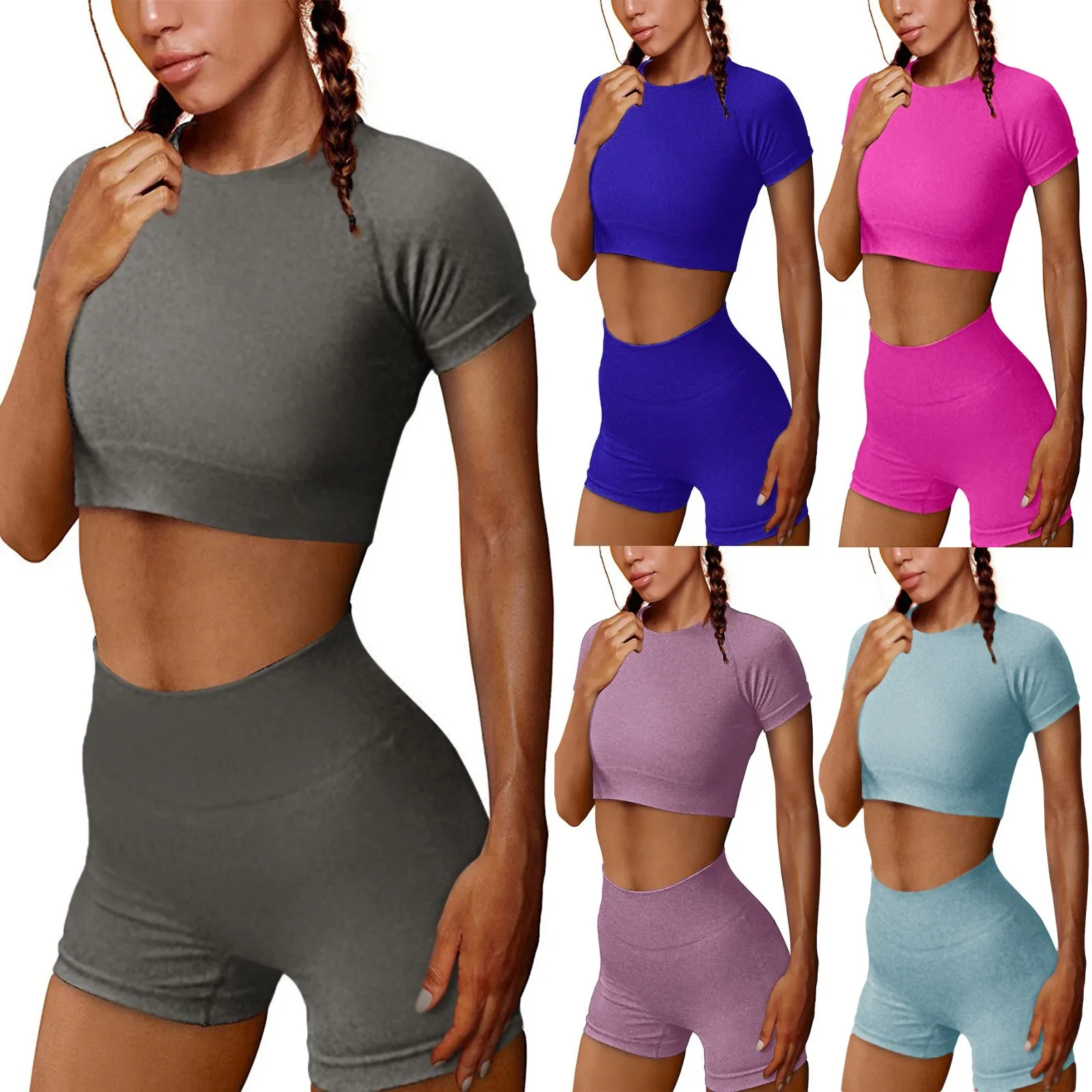 Женский спортивный костюм для йоги из 2 предметов, бесшовный бюстгальтер и шорты, для спортзала, фитнеса, бега, пуш-ап, летняя одежда