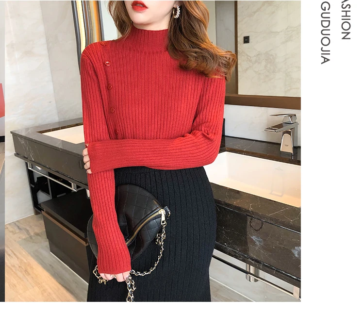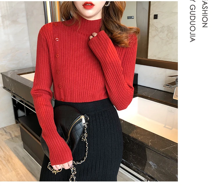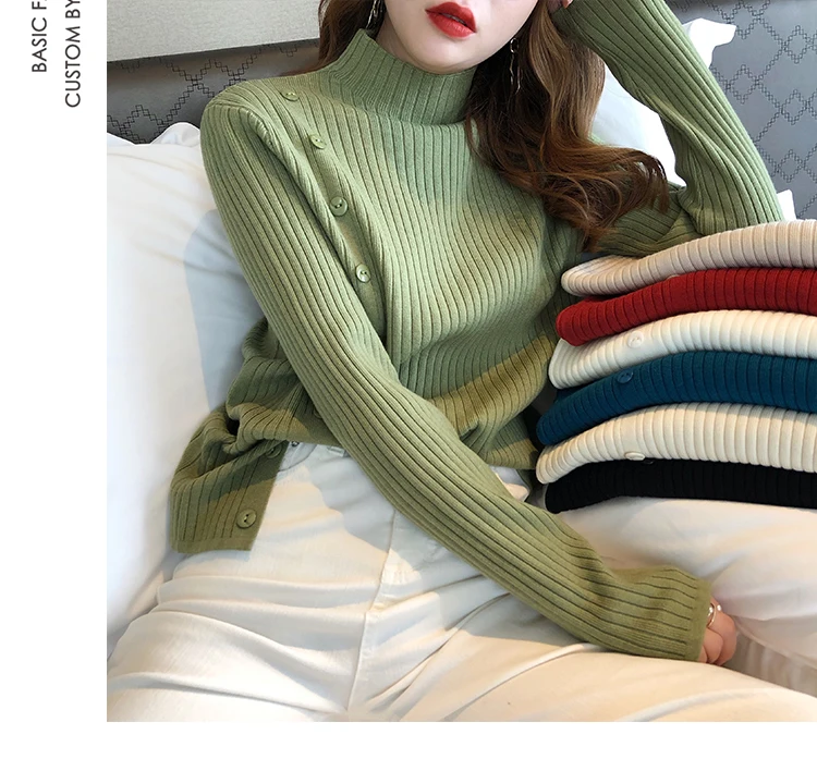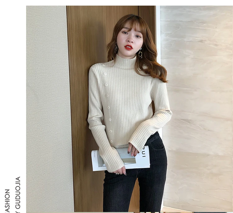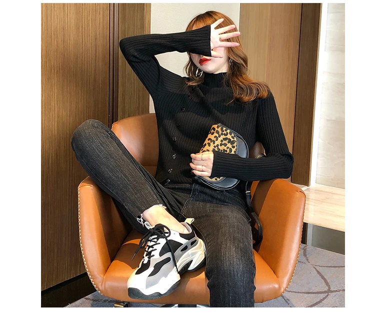 Новинка весна-осень 2021 трикотажные топы с высоким воротником женс...