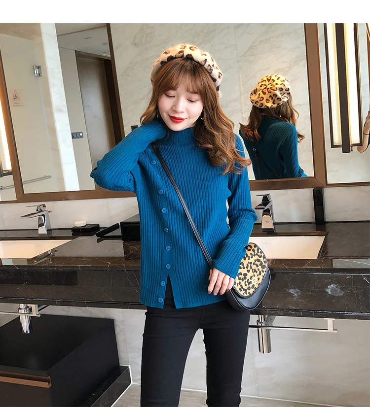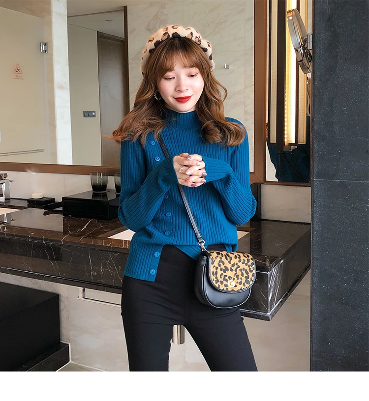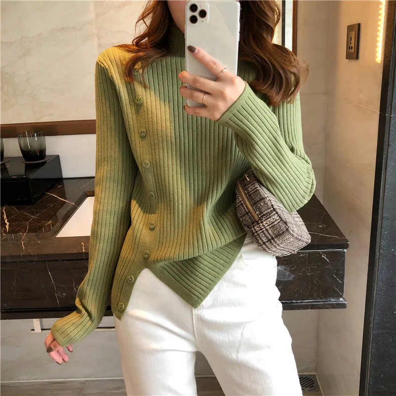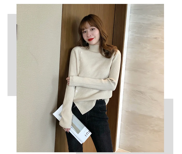 Женский трикотажный свитер на пуговицах, с высоким воротником