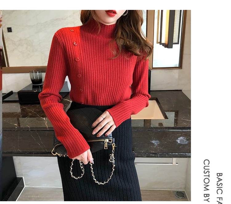 Женская водолазка на пуговицах, эластичный облегающий джемпер с дли...