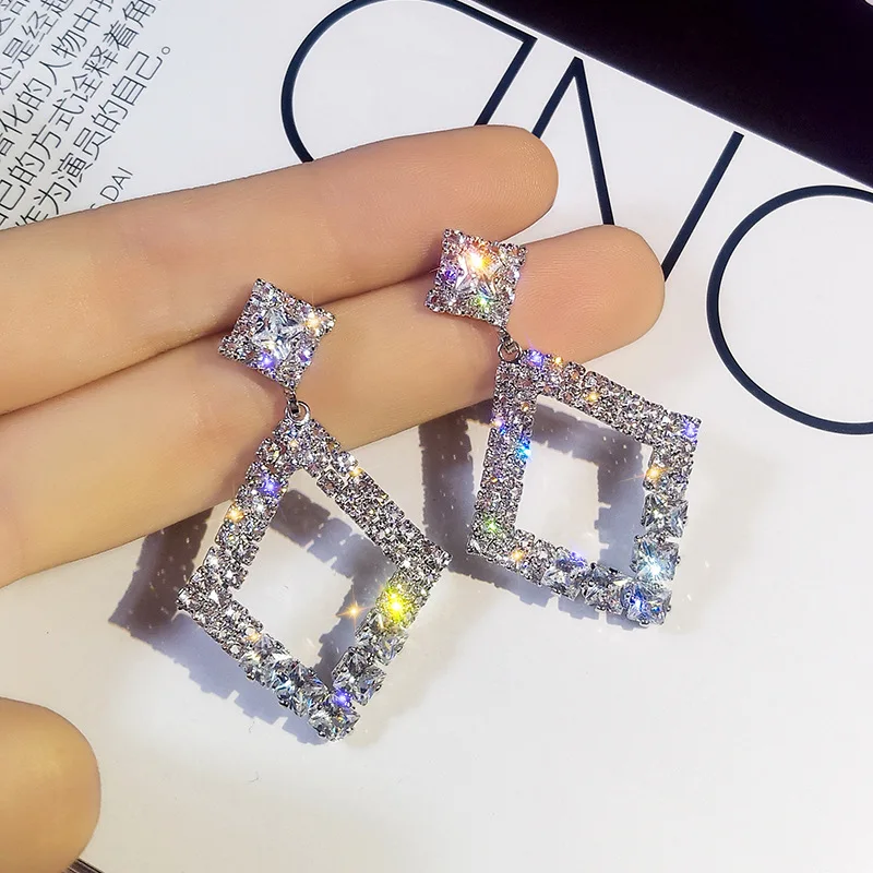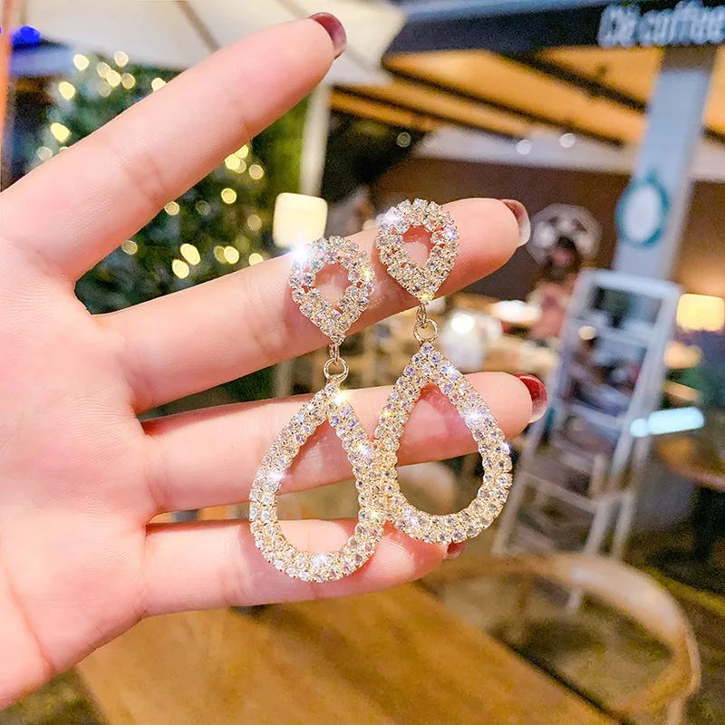 AINAMEISI полные Rehinestone серьги-кольца для женщин большие блестящие романтические бриллиантовые Висячие серьги для подарка свадьбы вечеринки девушки