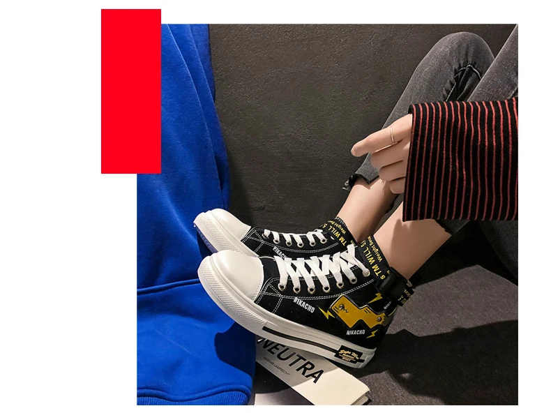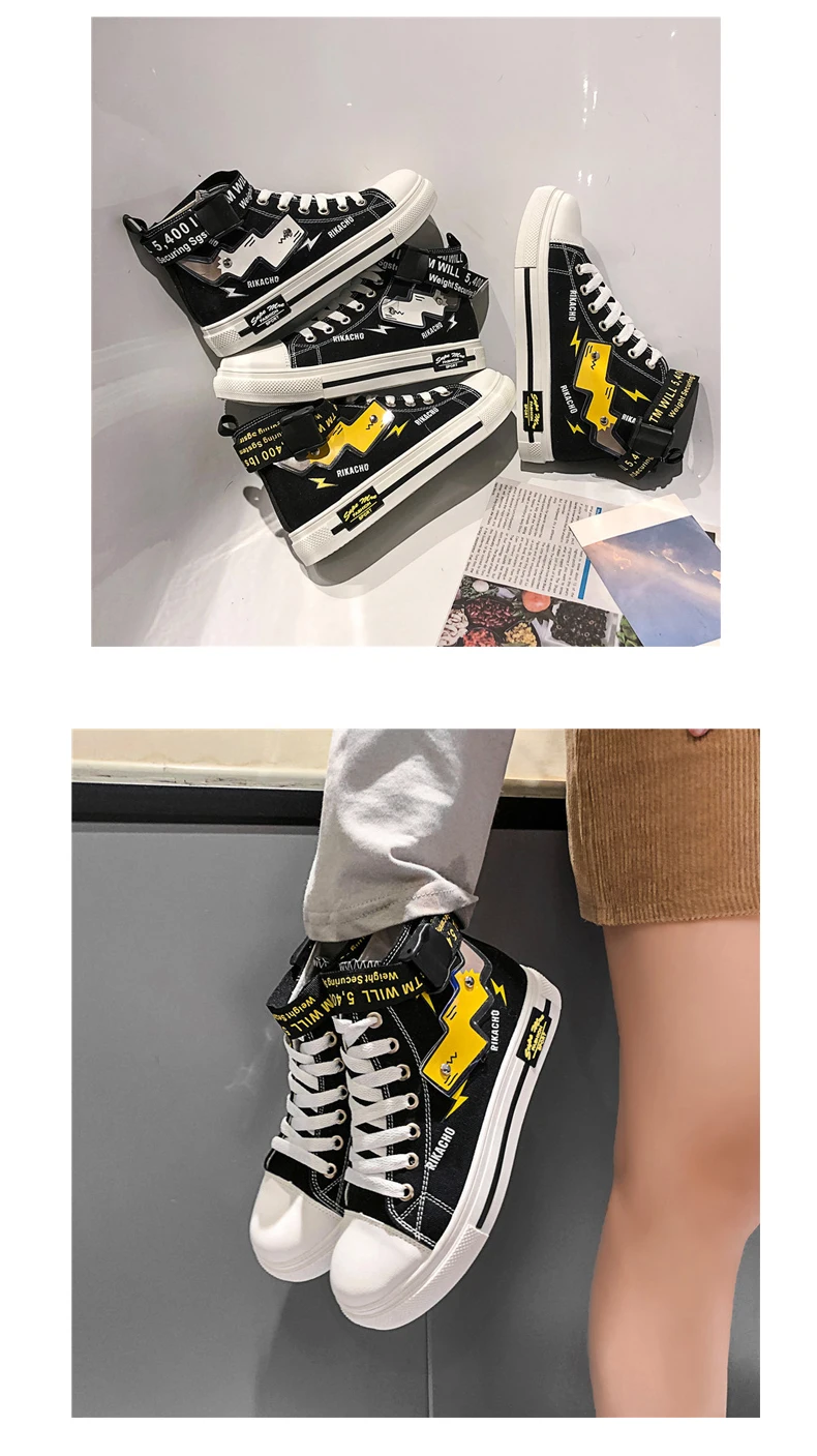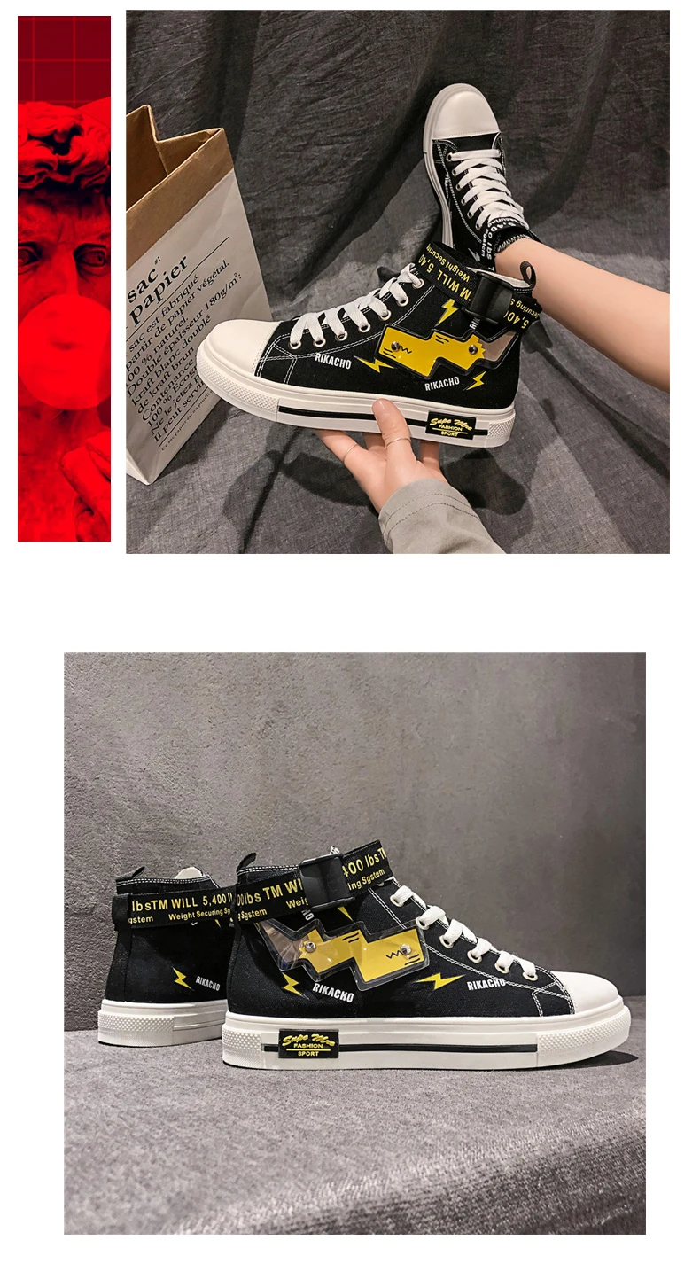 Кеды Pikachu мужские высокие, повседневные холщовые кроссовки с мул...