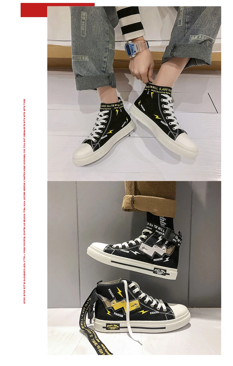 Высокие Повседневная мужская обувь из холстины модные кроссовки с вулканизированной подошвой в стиле хип-хоп для мужчин и женщин