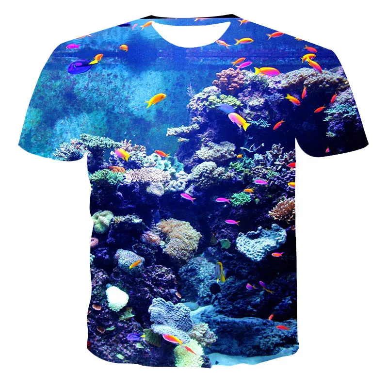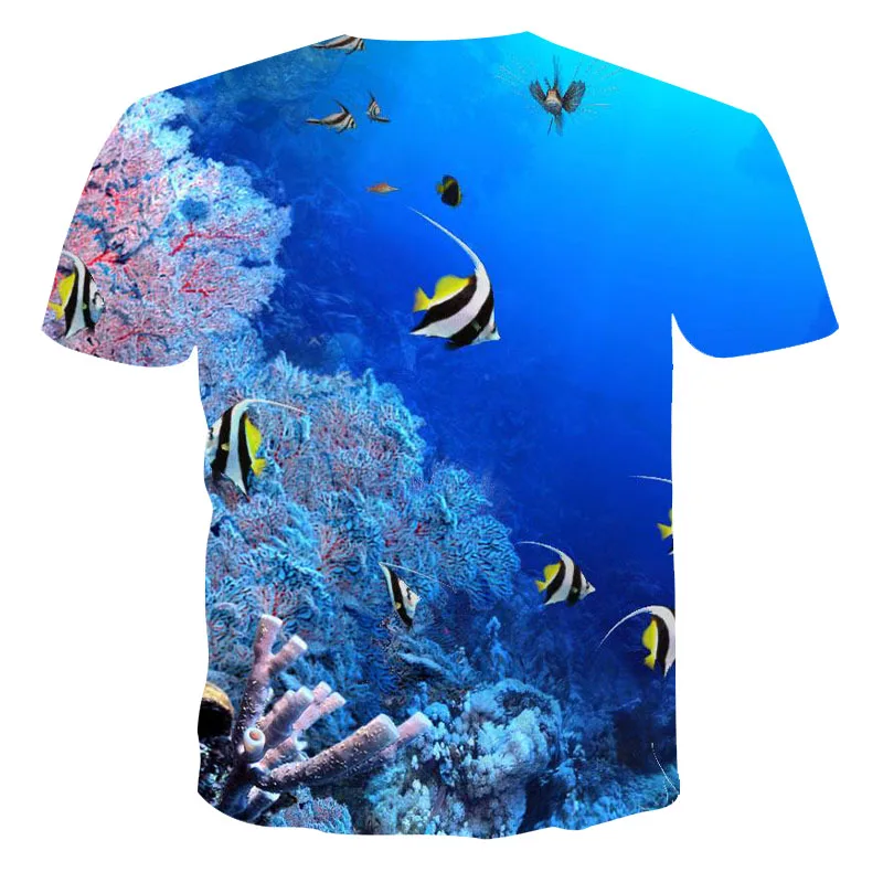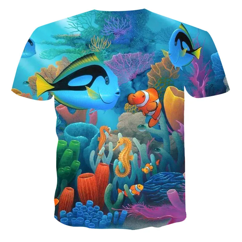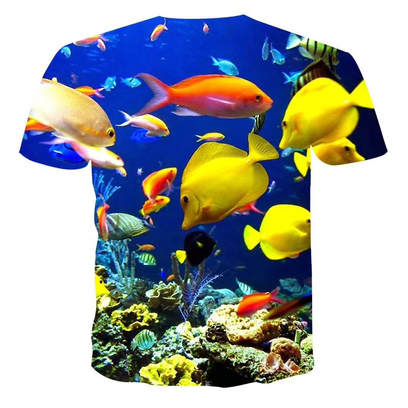 Подводный мир 3D печать рыбалка одежда для мужчинмальчиков 110-6XL трендовые круглые шеи дышащие шорты рукава Топы Оверсайз Футболки