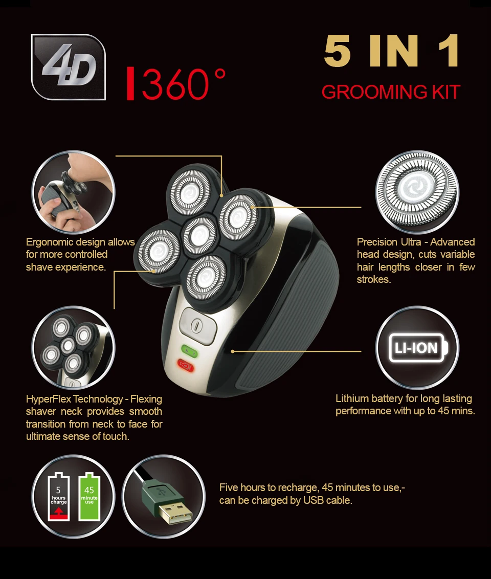 Электробритвы бритвенный станок 5 в 1 лезвия для бороды 4D 5 лезвий нос триммер для стрижки волос Перезаряжаемые для Для мужчин лицо USB секс