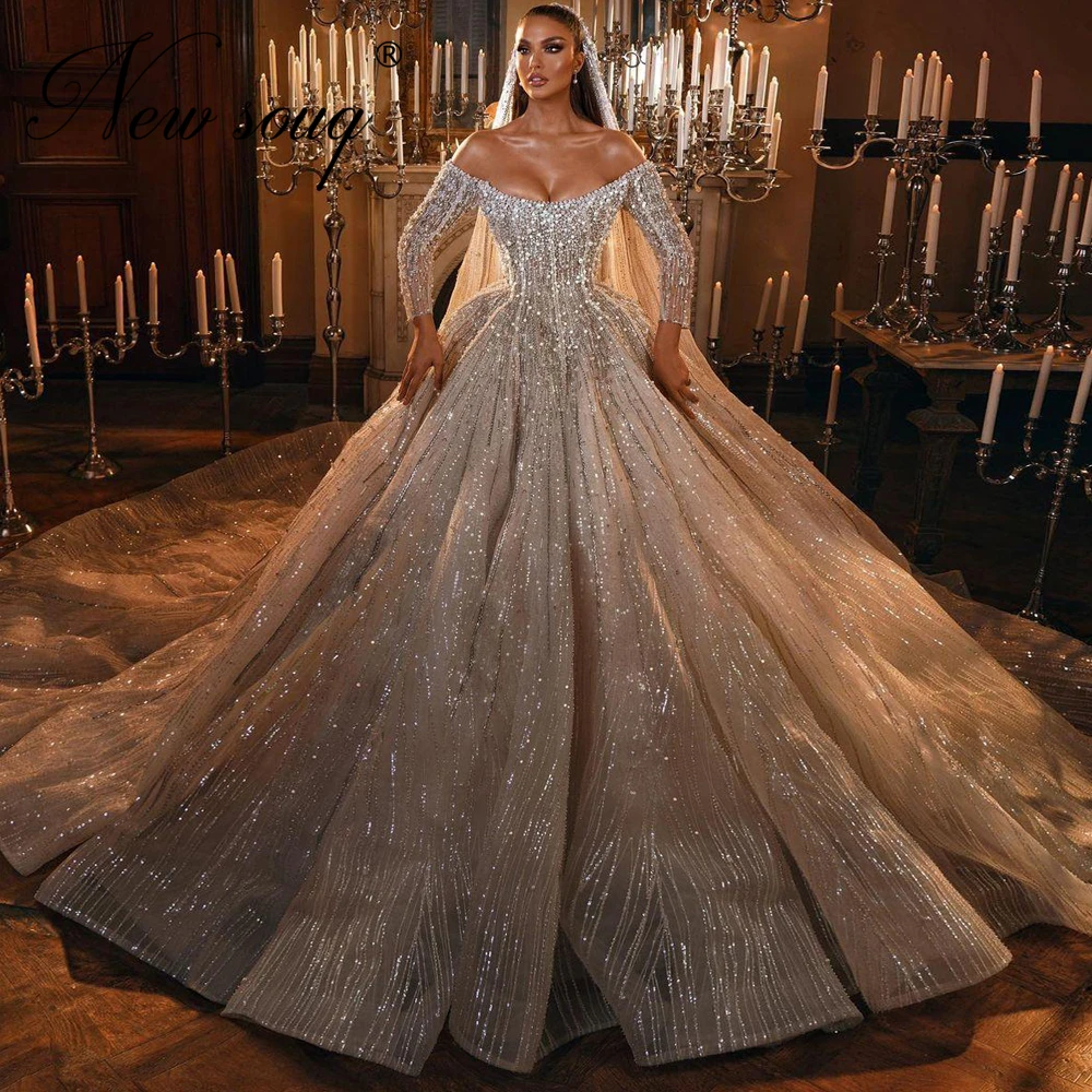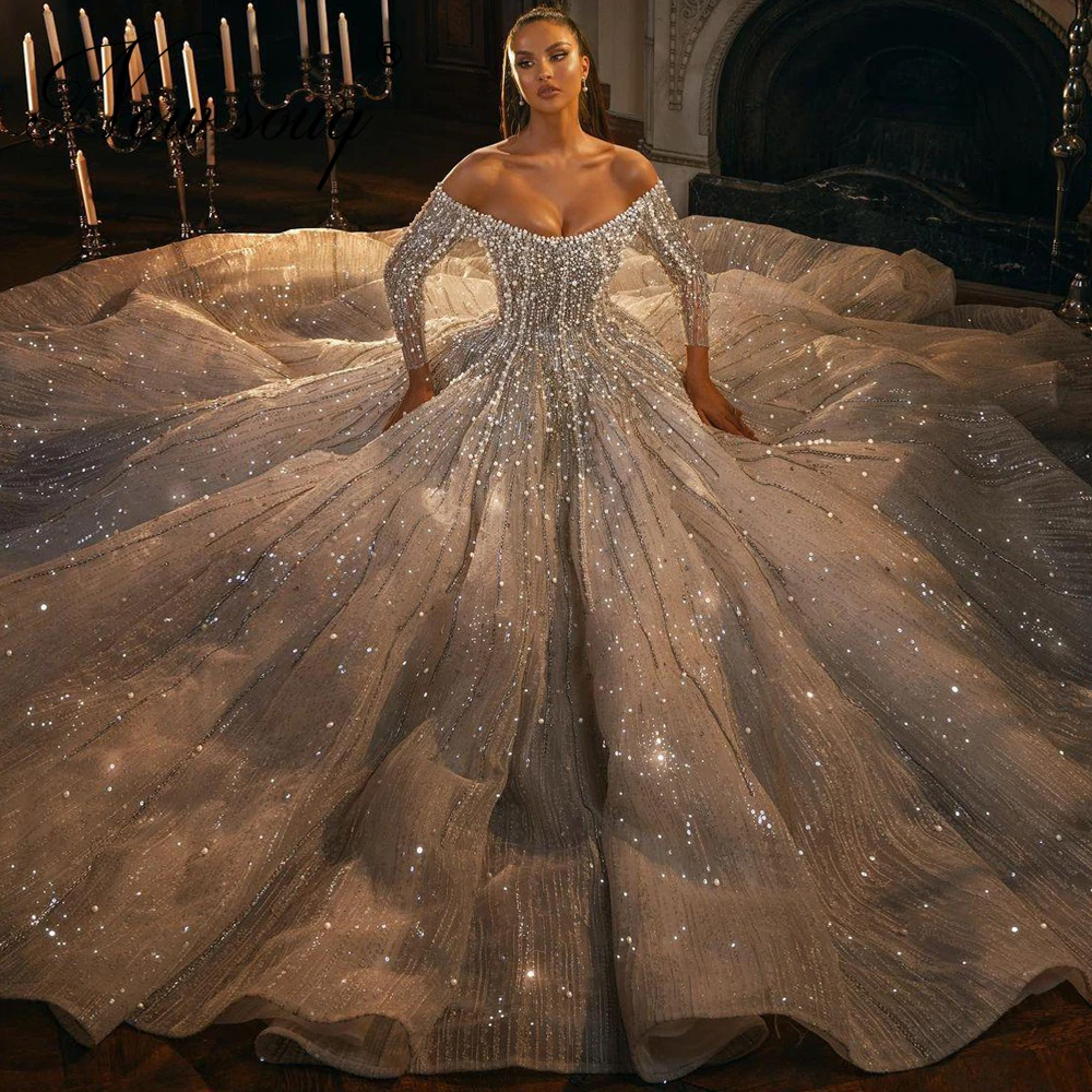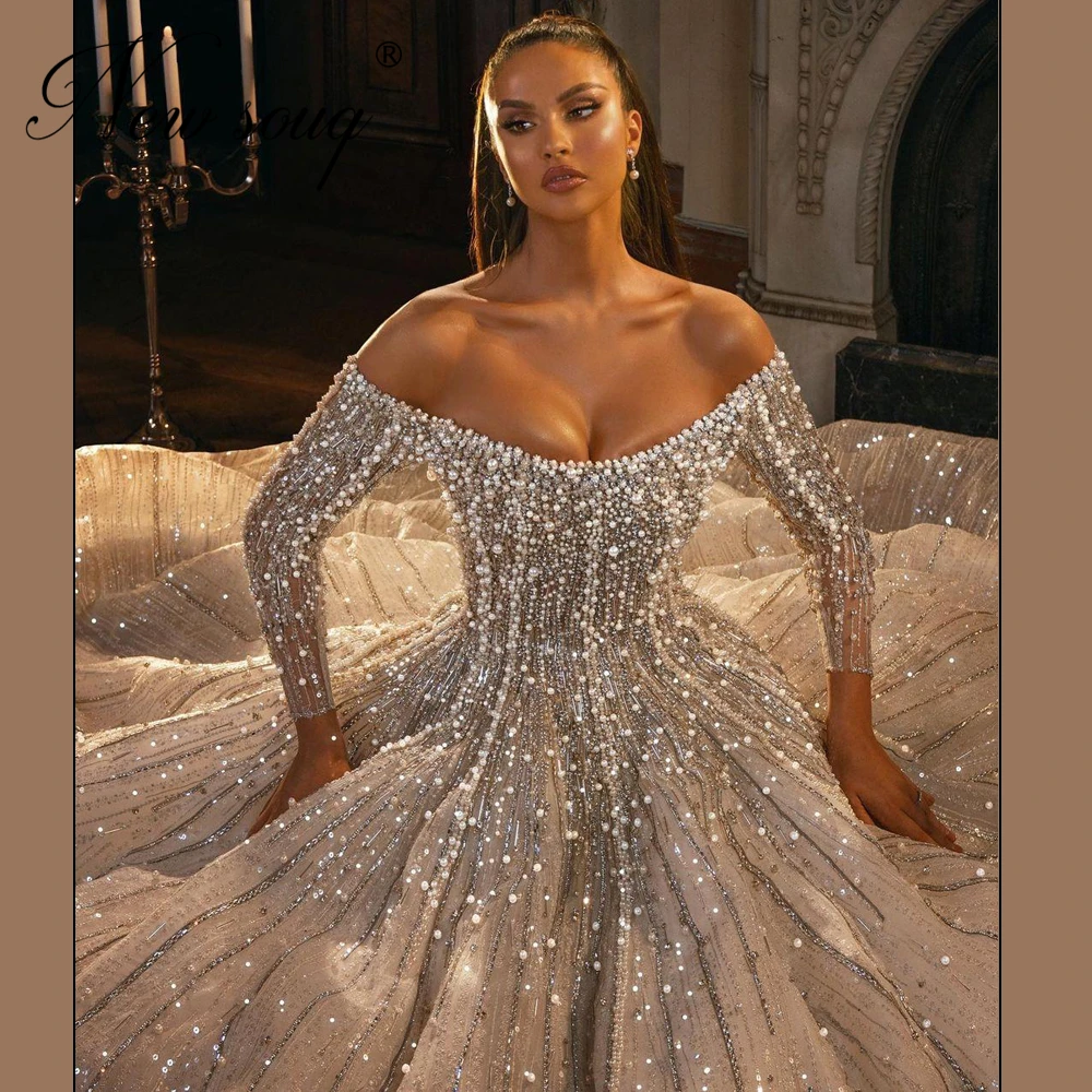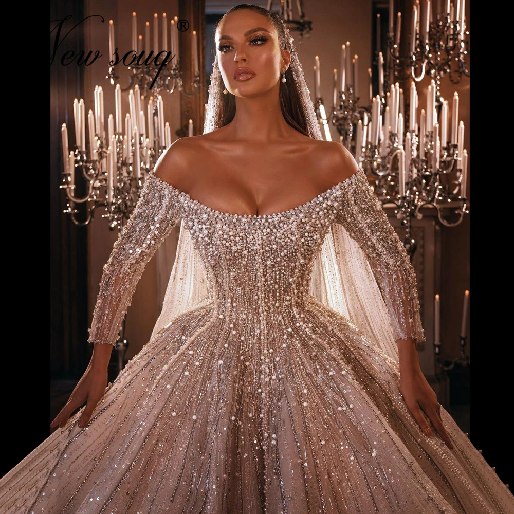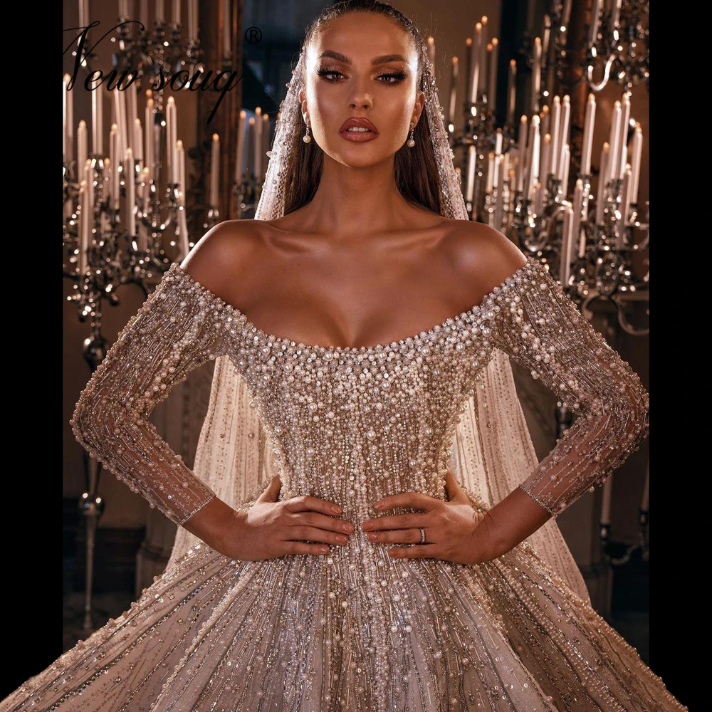 Свадебные платья с полной бисером Haute Dubai 2021 платья невесты с королевским шлейфом Среднего Востока арабские платья невесты с длинным рукавом платья